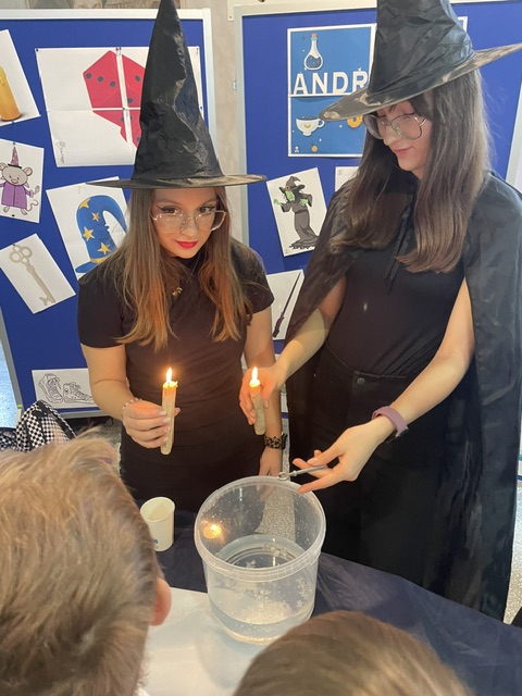 Szkolny hol zamienił się w piątek 28 listopada w prawdziwą krainę czarów! Samorząd Uczniowski, przy ogromnym wsparciu starszych uczennic, przygotował wyjątkowe andrzejkowe atrakcje, które od rana przyciągały tłumy ciekawych swojej "przyszłości" uczniów.