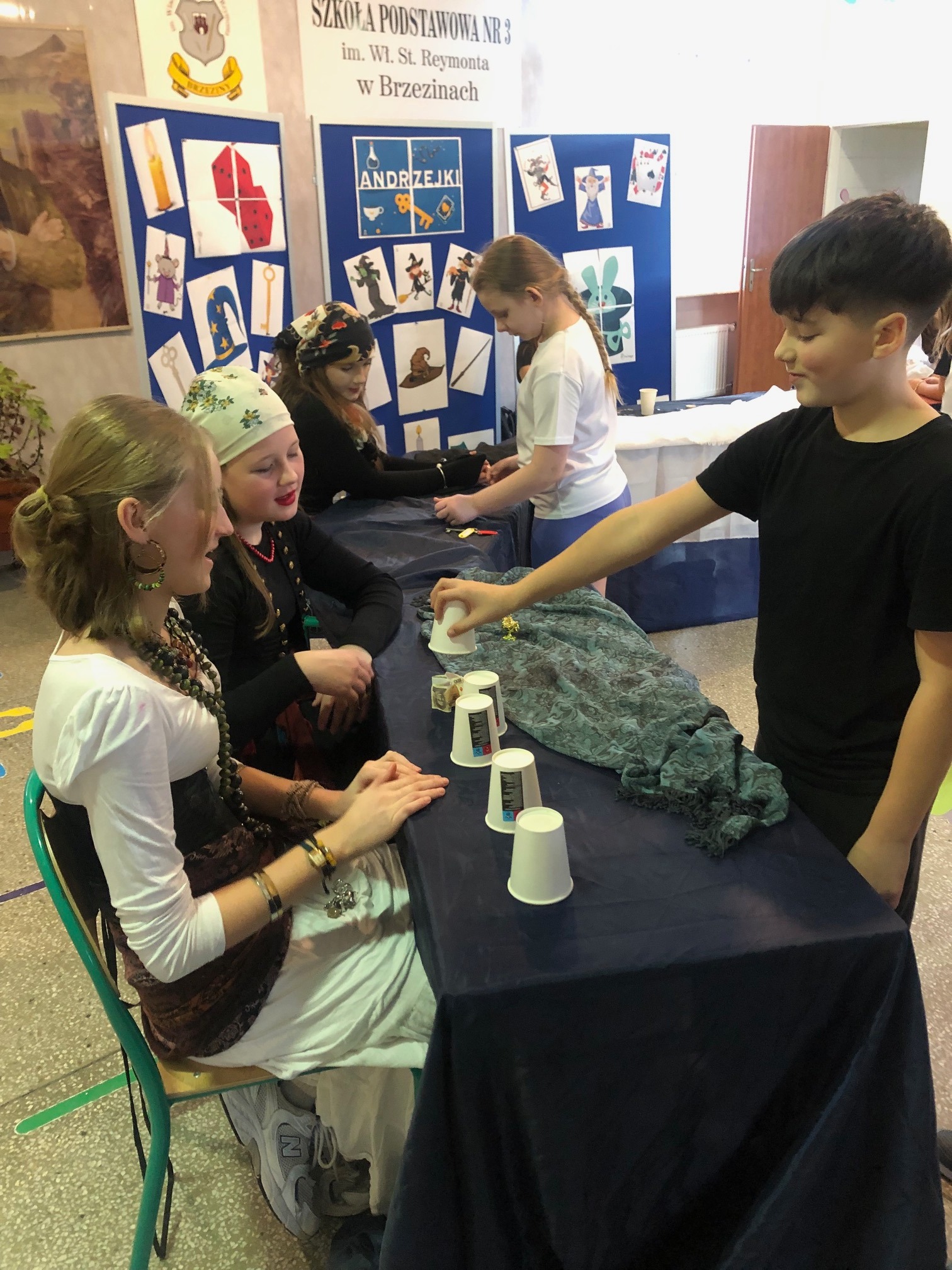 Oprócz wróżb ogromnym zainteresowaniem cieszyła się również gra terenowa, przygotowana przez starsze klasy. Zadania angażowały uczestników, wymagały sprytu i współpracy, a przede wszystkim gwarantowały świetną zabawę. Nie zabrakło też andrzejkowej muzyki, śmiechu i pozytywnej energii.