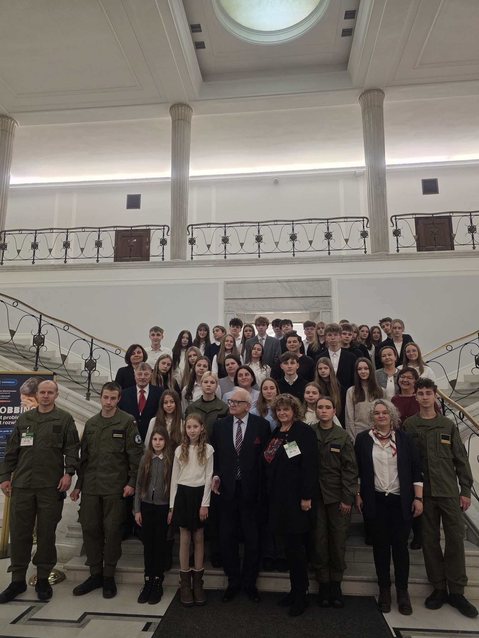 5 grudnia 2025r. delegacja naszej szkoły wraz pocztem sztandarowym i opiekunami wzięli udział w uroczystych obchodach 100. rocznicy śmierci patrona szkoły - Władysława Stanisława Reymonta. Uroczystości , które zgromadziły przedstawicieli świata kultury i nauki, stowarzyszeń, fundacji reymontowskich, a także uczniów i nauczycieli szkół noszących imię polskiego noblisty, rozpoczęły się przy grobie pisarza w Alei Zasłużonych na Starych Powązkach. Po okolicznościowych przemowach, złożeniu kwiatów i zapaleniu zniczy na mogile naszego patrona, dalsza część obchodów przeniosła się do Pałacu Przebendowskich/Radziwiłłów, czyli Muzeum Niepodległości. Po wysłuchaniu wykładu na temat życia i twórczości Wł. St. Reymonta, a także pełnego humoru wystąpienia pana Lecha Marchlewskiego pt. „Chłopi na wesoło – humor z zeszytów szkolnych” była możliwość obejrzenia stałej wystawy poświęconej pisarzowi i zwiedzenia muzeum. Na podsumowanie, dzięki uprzejmości i na zaproszenie posła Tadeusza Samborskiego, „Reymontowska Rodzina” udała się do siedziby Sejmu Rzeczypospolitej Polskiej. Była to wyjątkowa okazja, ponieważ mogliśmy zobaczyć budynek w trakcie obrad, co było niecodziennym doświadczeniem poznania piękna polskiego parlamentaryzmu oraz jego historii.