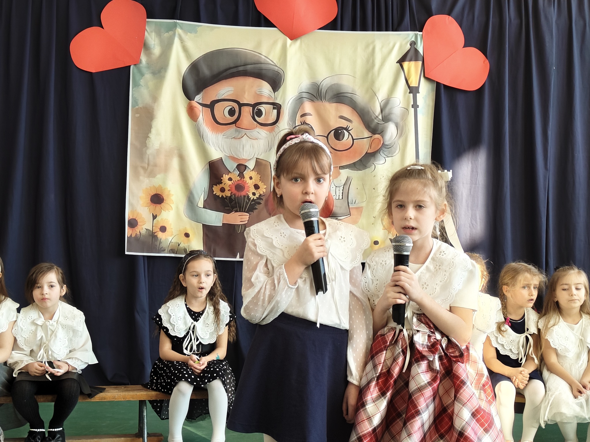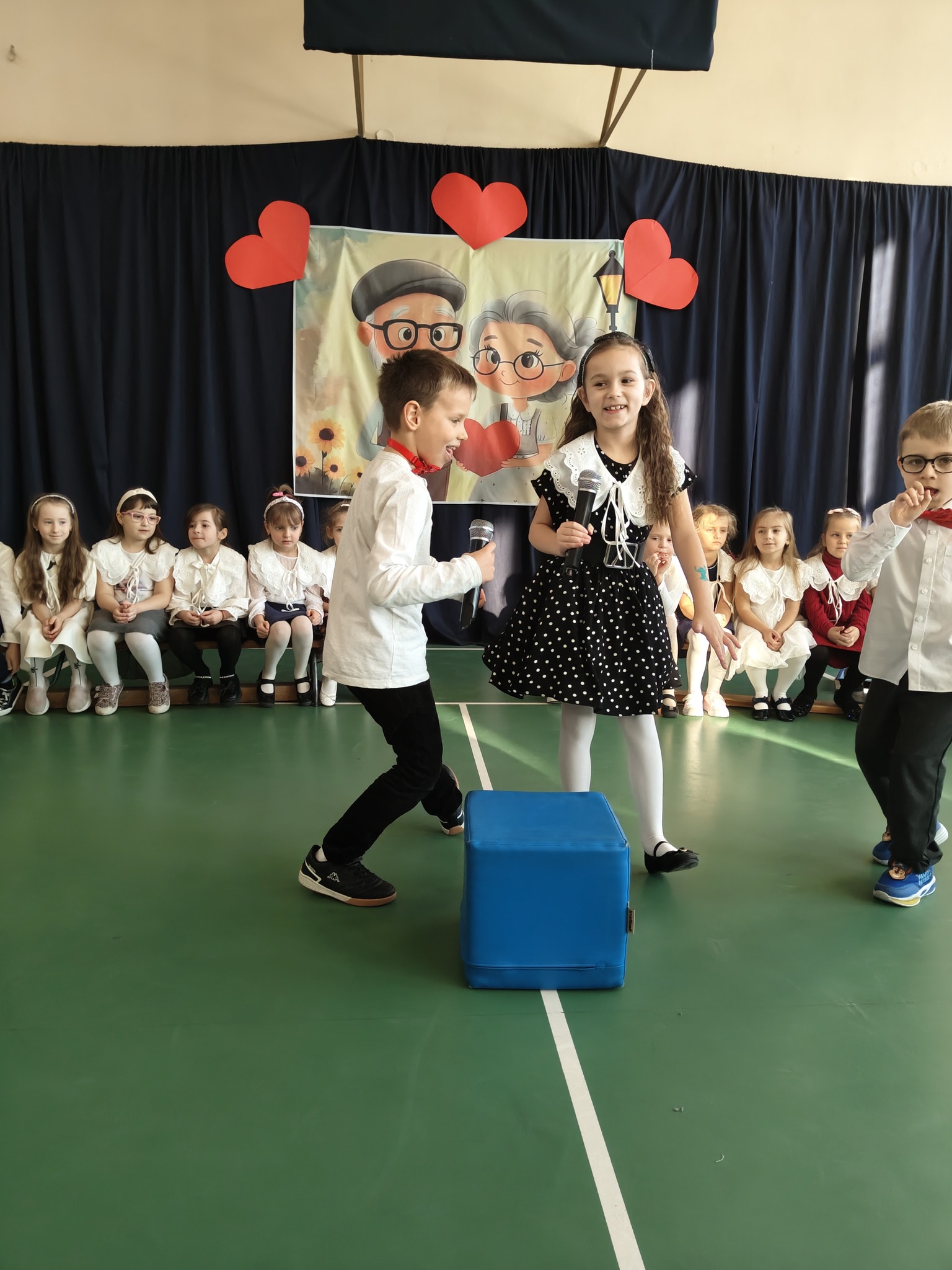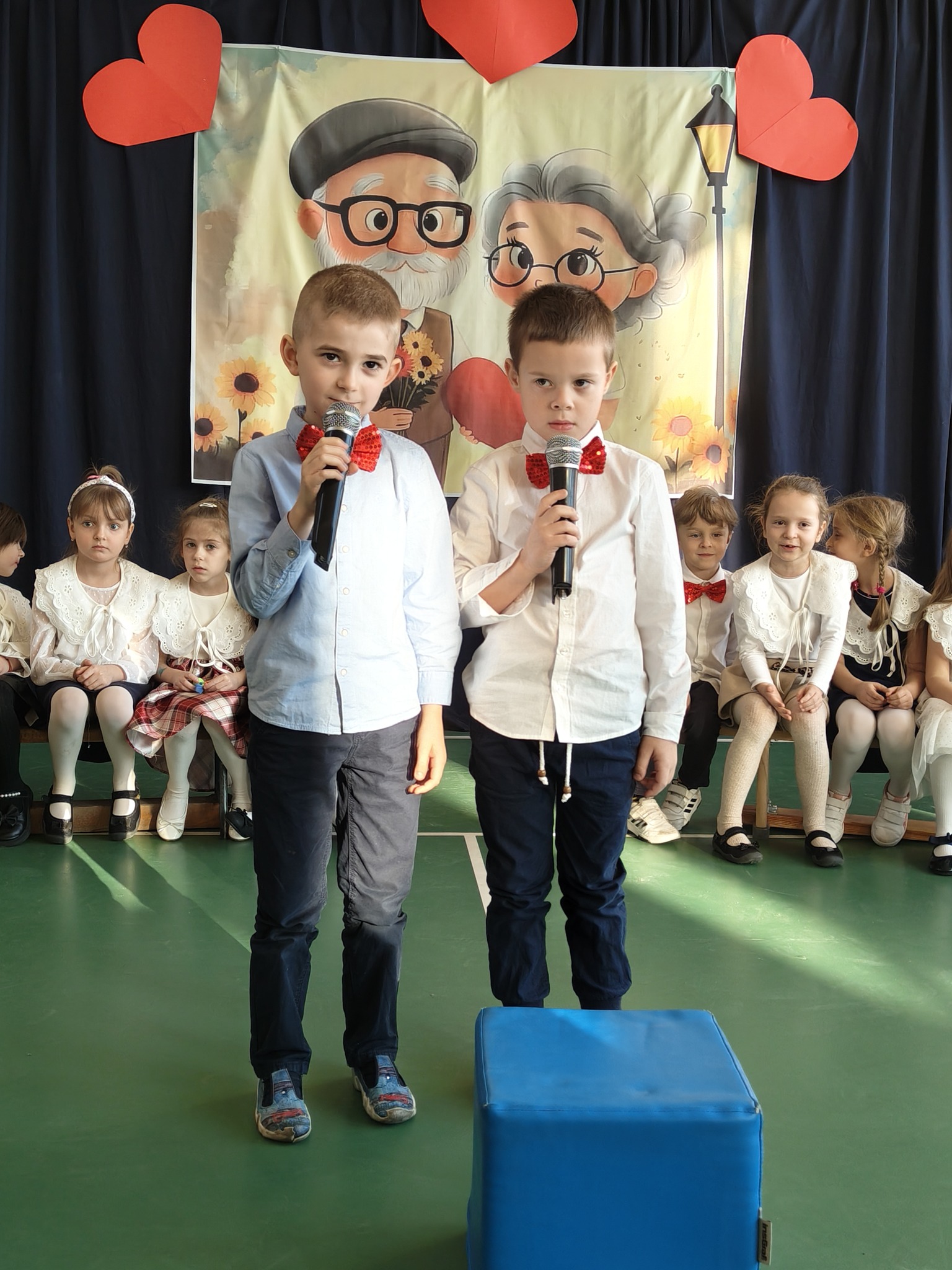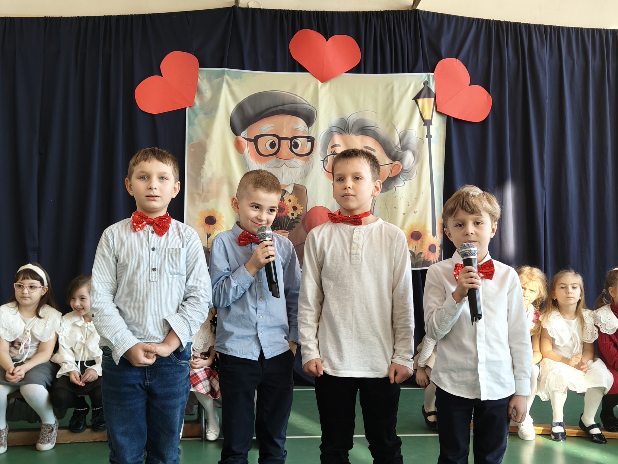 Dzieci z Oddziału Przedszkolnego gościły we środę 21 stycznia Babcie i Dziadków na uroczystości z okazji ich święta. To właśnie dla nich przenieśliśmy się w czasie- do lat młodości naszych Dziadków i Babć wykonując podczas koncertu tak znane i lubiane piosenki jak "Dwudziestolatki" czy "Umówiłem się z nią na dziewiątą".