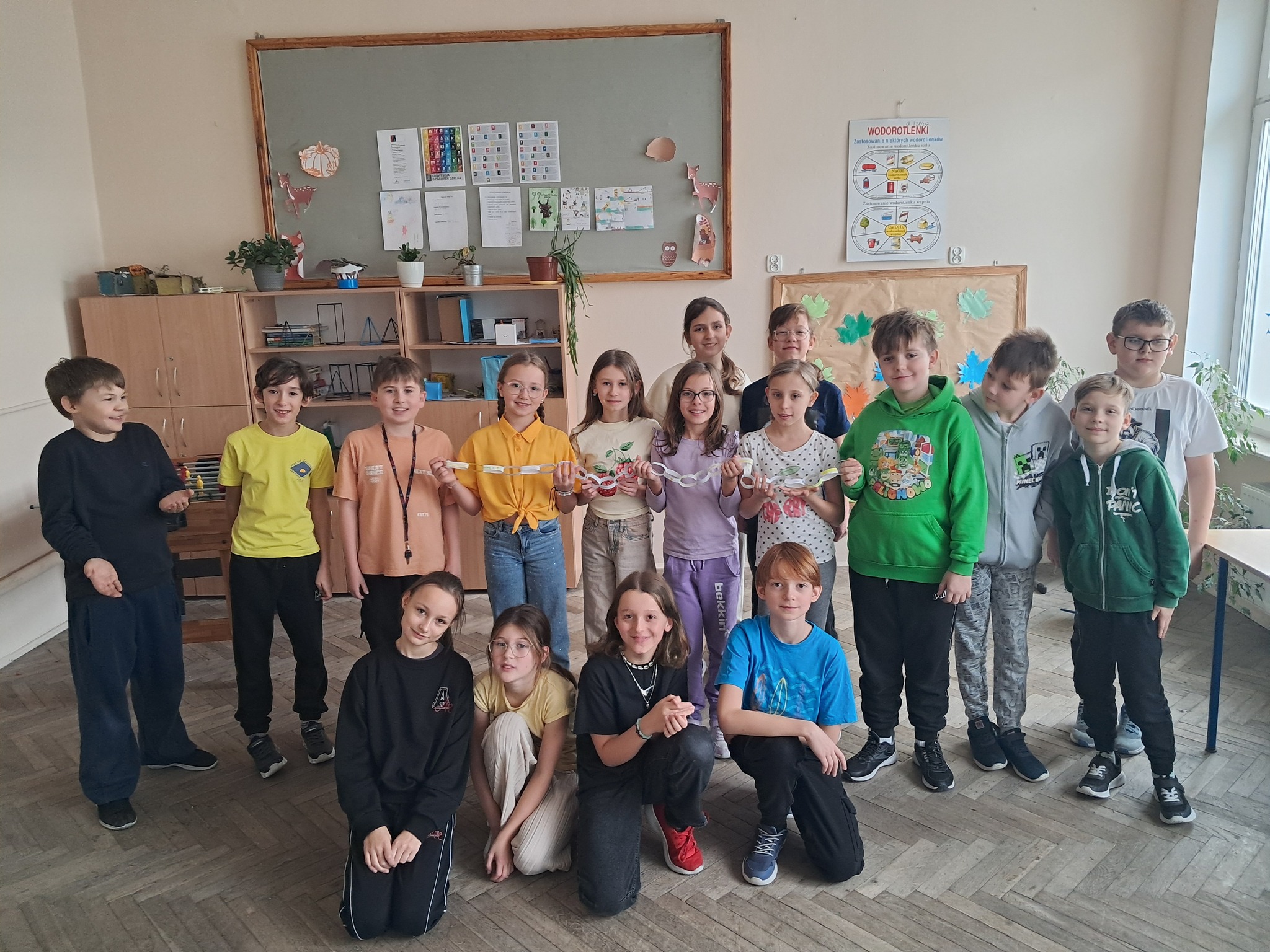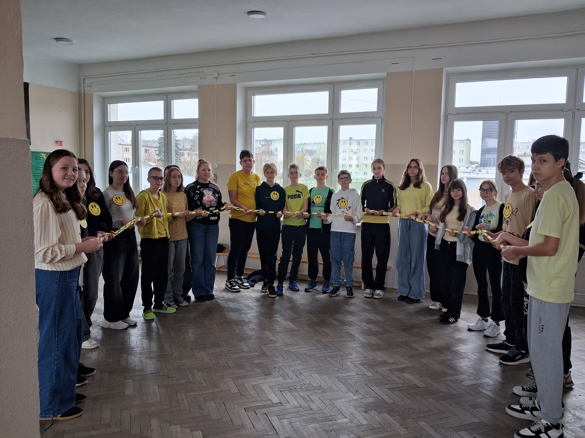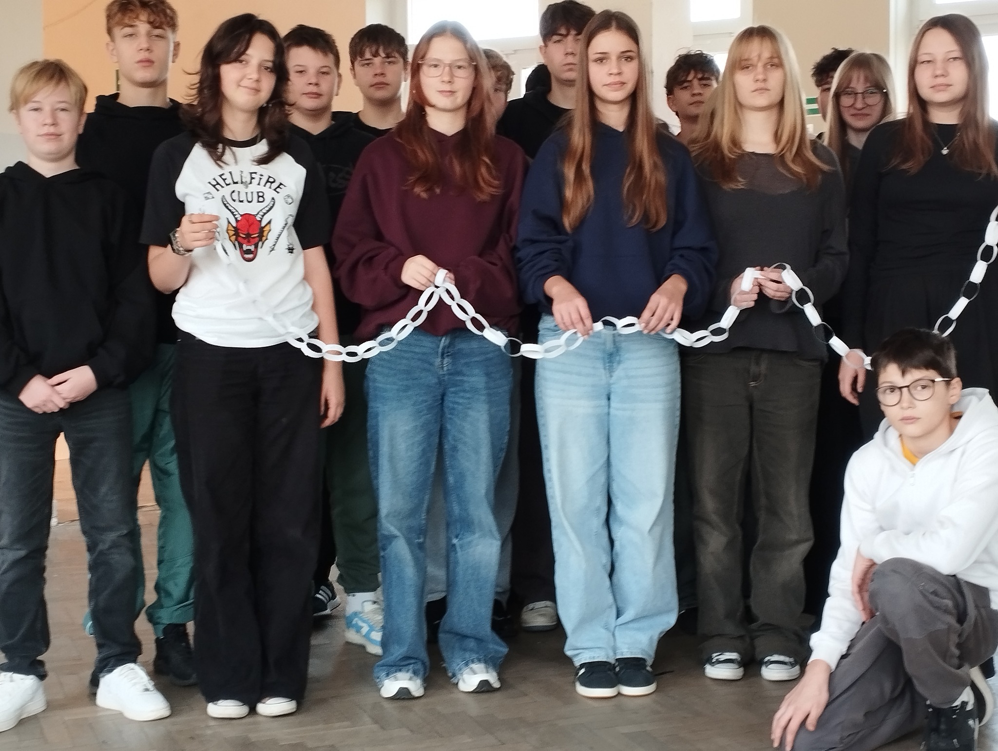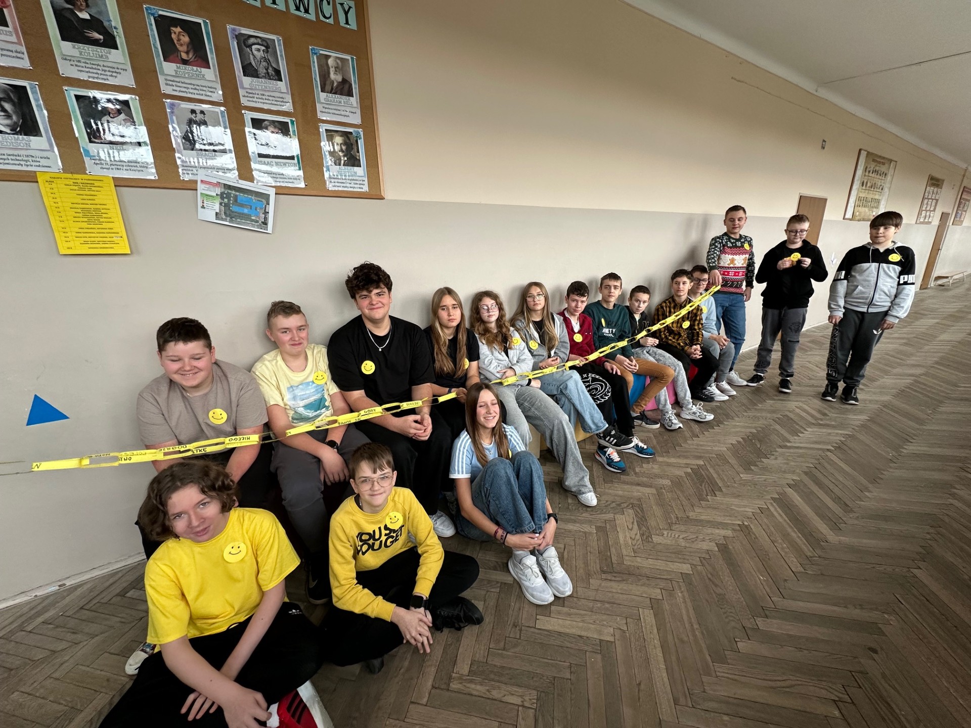 Z kolei klasy 4–8 wzięły udział w akcji „łańcuchów życzliwości”. Każdy uczeń dopisał swoje dobre słowo lub miły gest na kolorowych paskach, które po połączeniu stworzyły długi, symboliczny łańcuch dobrych uczynków.