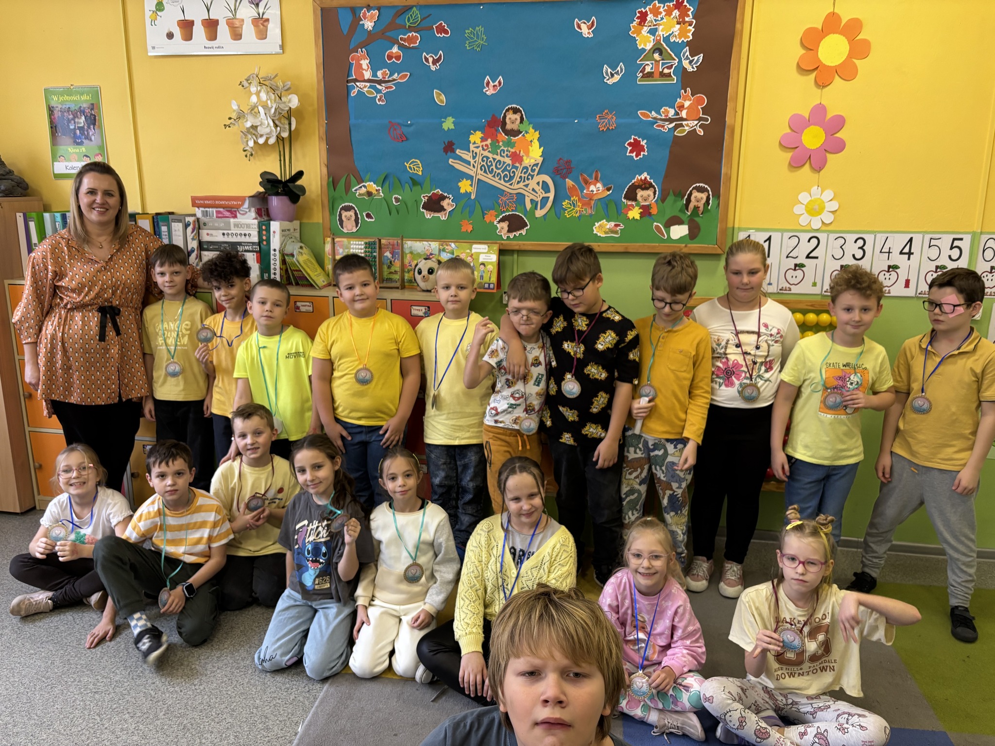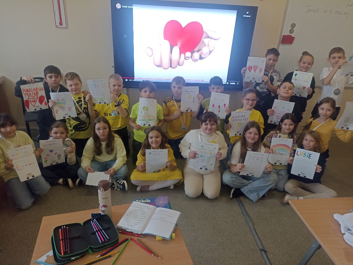 Uczniowie klas 1–3 przygotowali w swoich salach medale życzliwości oraz karty pełne ciepłych słów. Dzieci chętnie obdarowywały się nimi, tworząc atmosferę radości i wzajemnego doceniania.