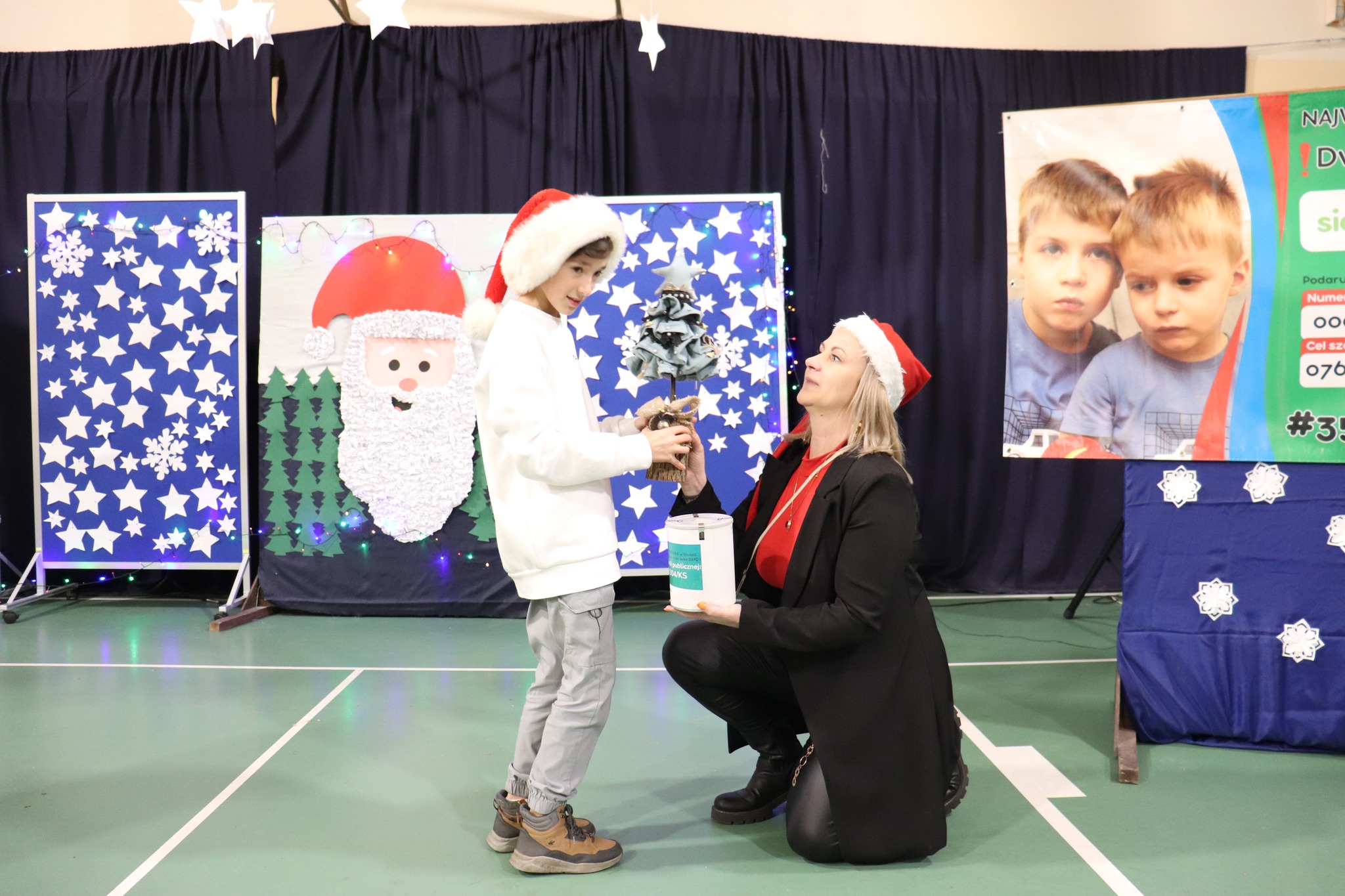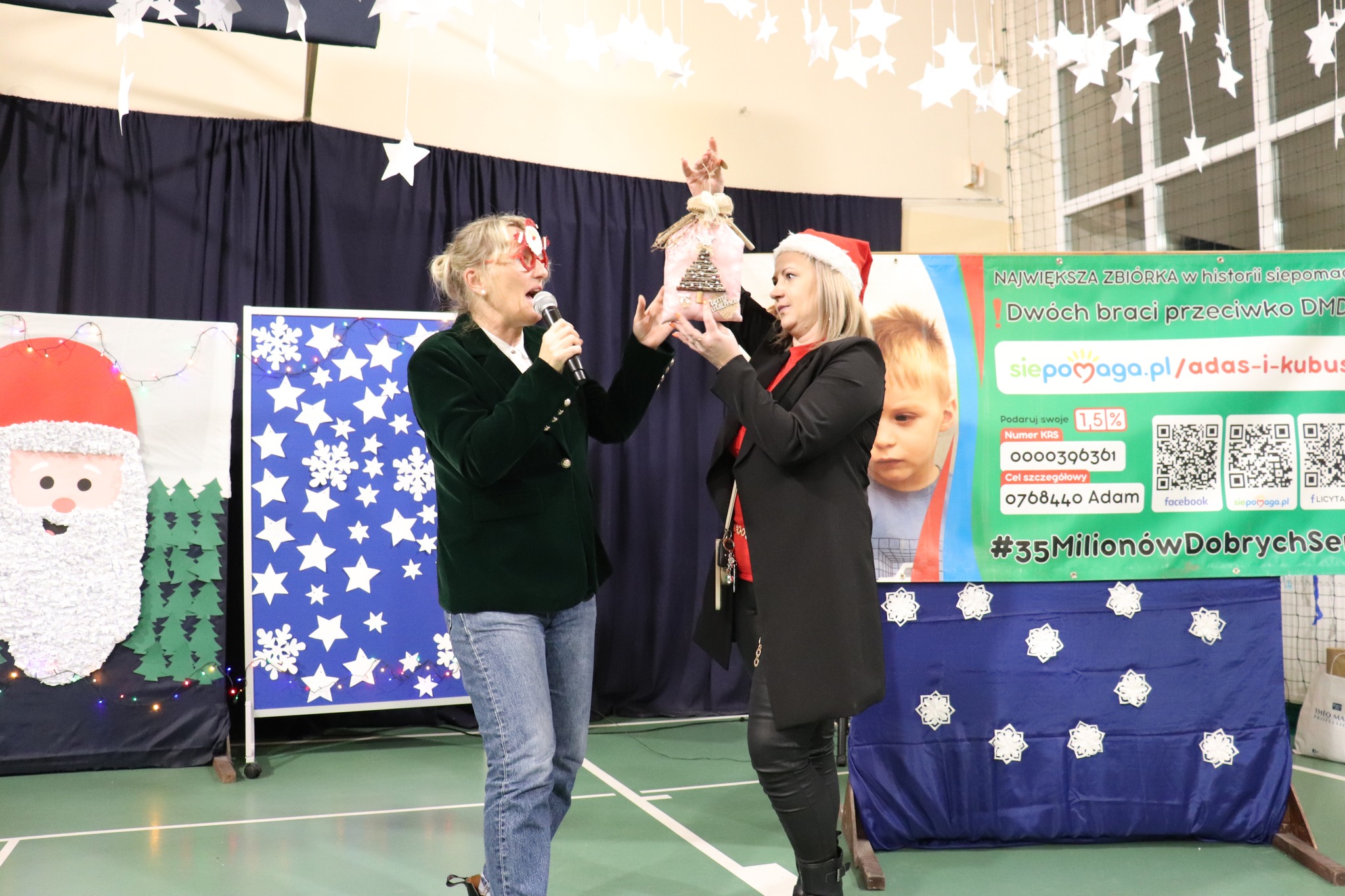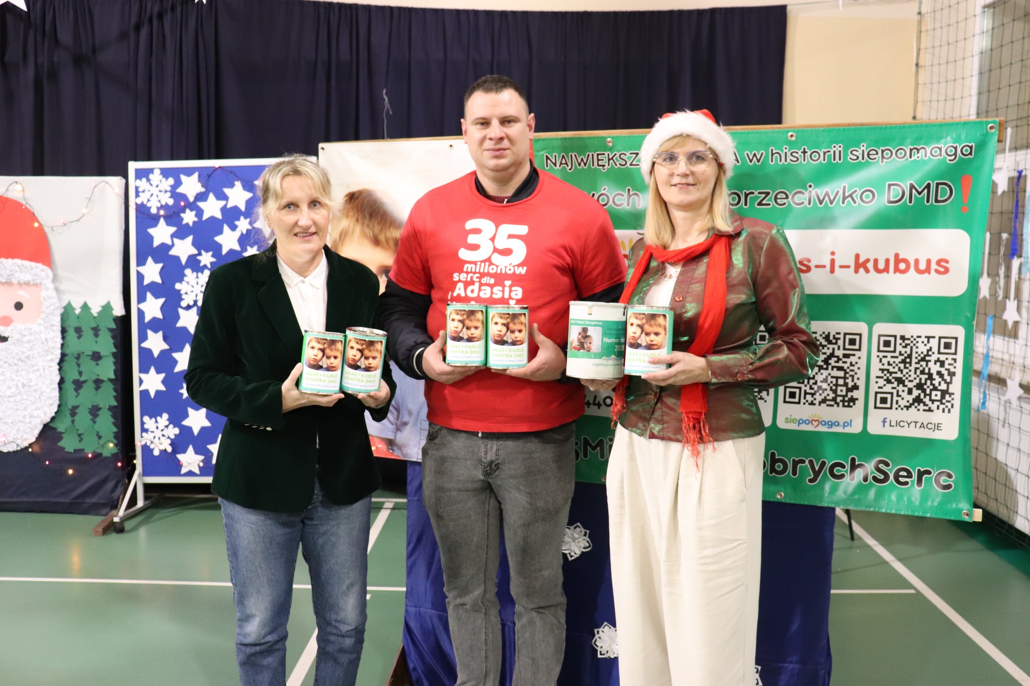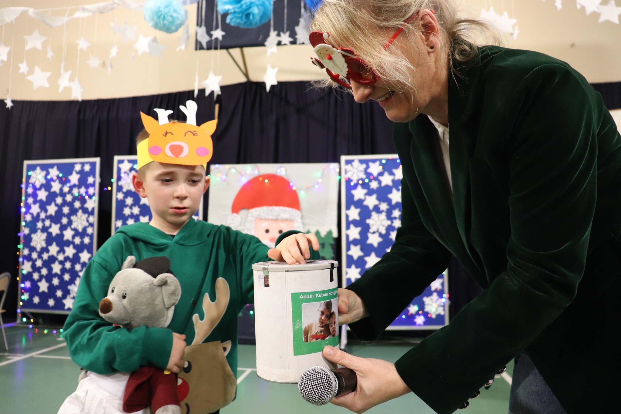 Nasza Trójkowa tradycja ponownie przyciągnęła tłumy dzieci i rodziców tym razem pragnących zasilić szczytny cel: zbiórkę środków na rzecz Adasia i Kubusia ze Skierniewic - braci zmagających się z dystrofią mięśniową Duchenne'a. Występy młodych artystów, kiermasze i licytacje znakomicie się udały, piękne krasnale, stroiki, świąteczne ozdoby, a nawet helikopter (!!!) błyskawicznie znalazły swoich nabywców. Najmłodsi goście również nie narzekali - świetnie zajęli się nimi Trójkowi nauczyciele. Kto miał ochotę, mógł także za drobny datek wrzucony do puszki uraczyć się smakowitymi wypiekami, które zapewniły nasze wspaniałe mamy z Rady Rodziców. Pod koniec imprezy odwiedził nas także pan Michał, tata Adasia i Kubusia, aby podziękować pani dyrektor i całej społeczności naszej szkoły za piękny odruch serca.