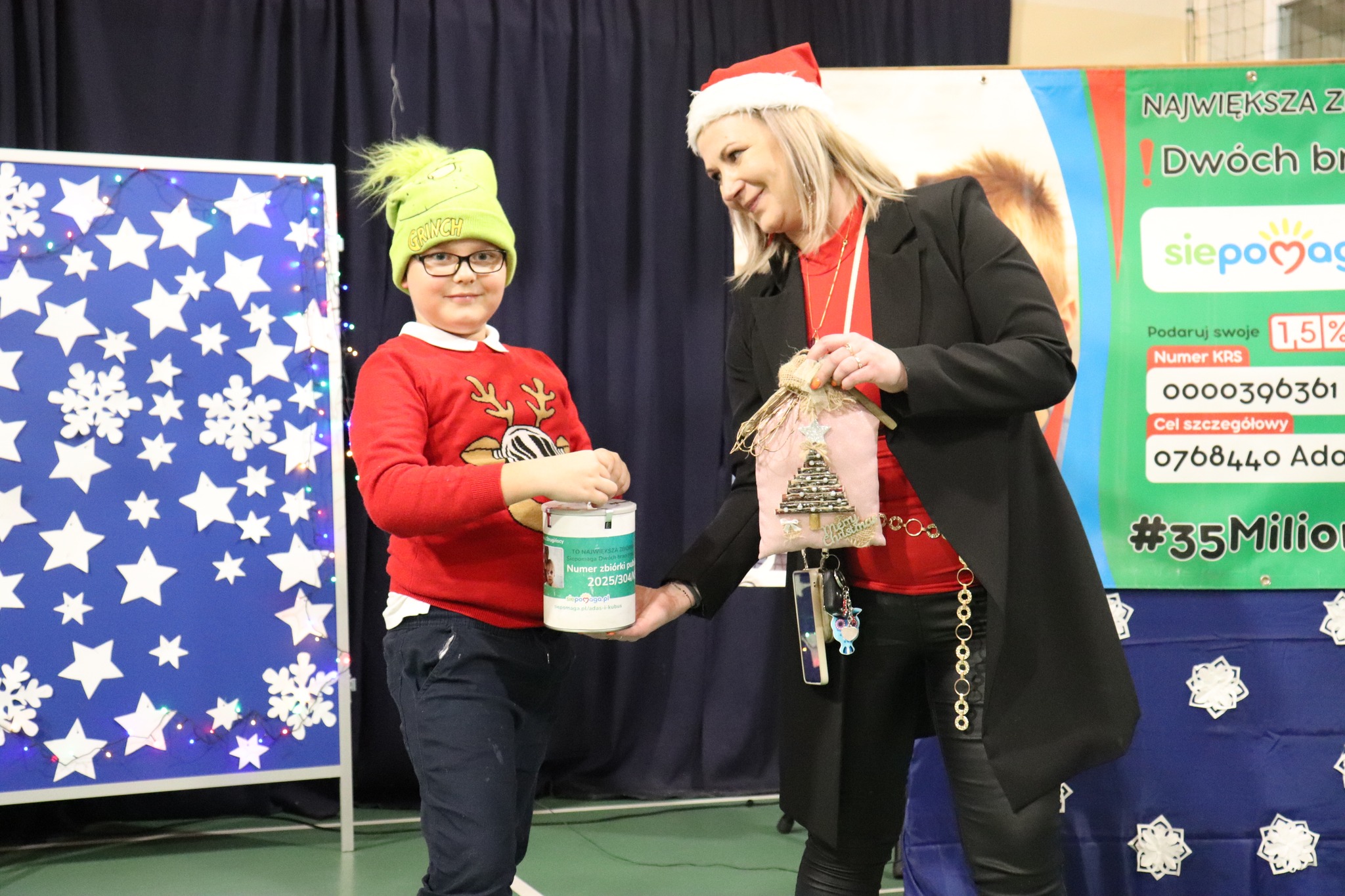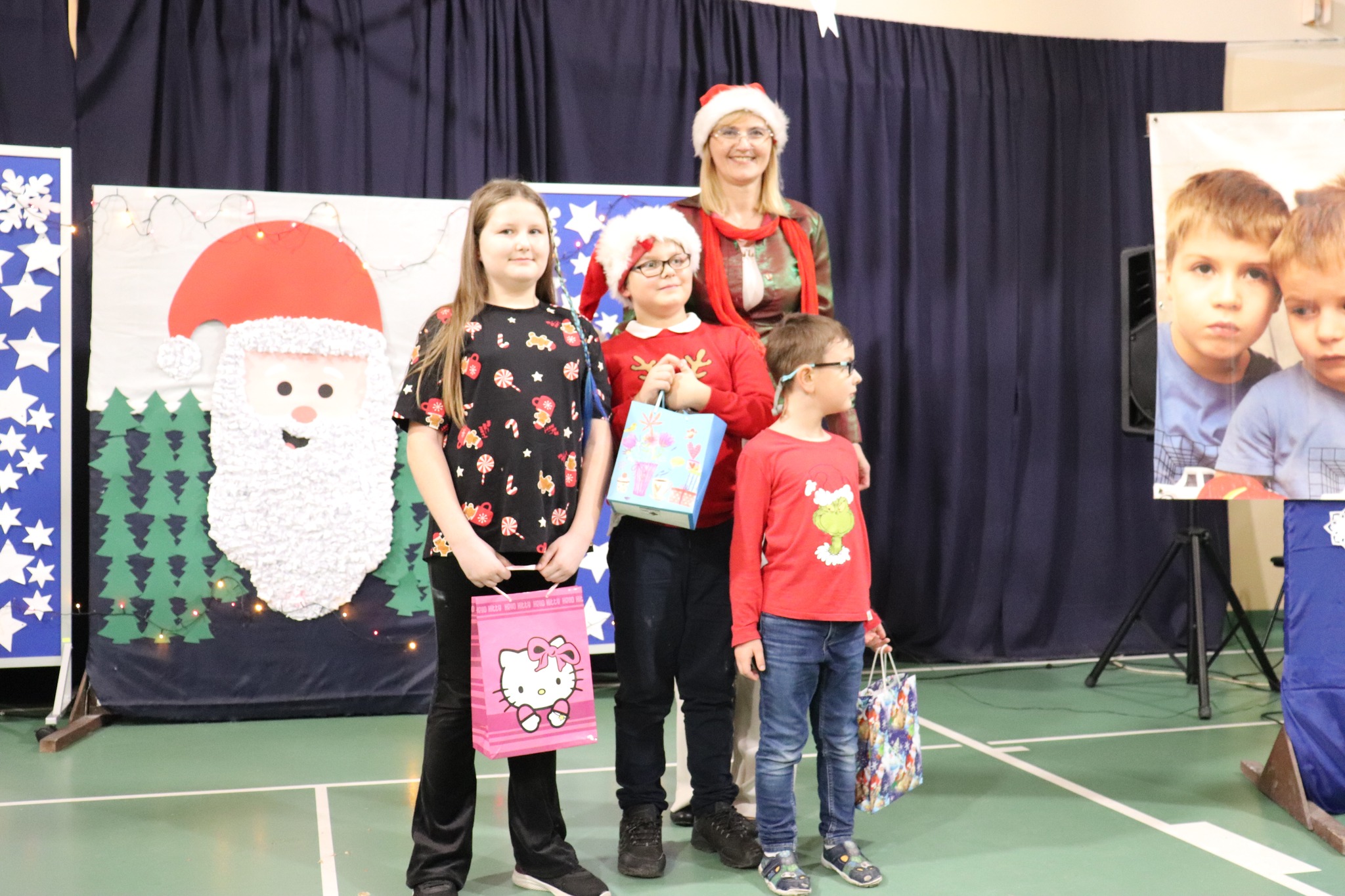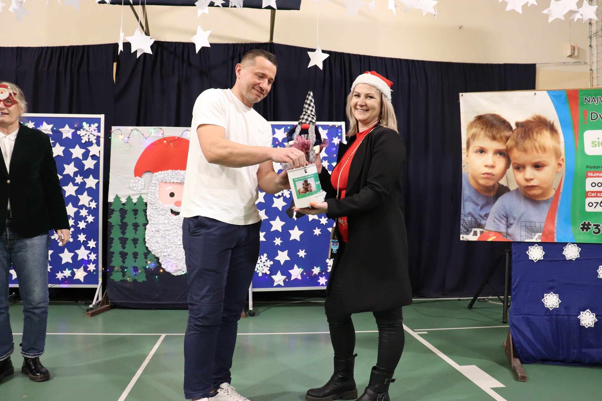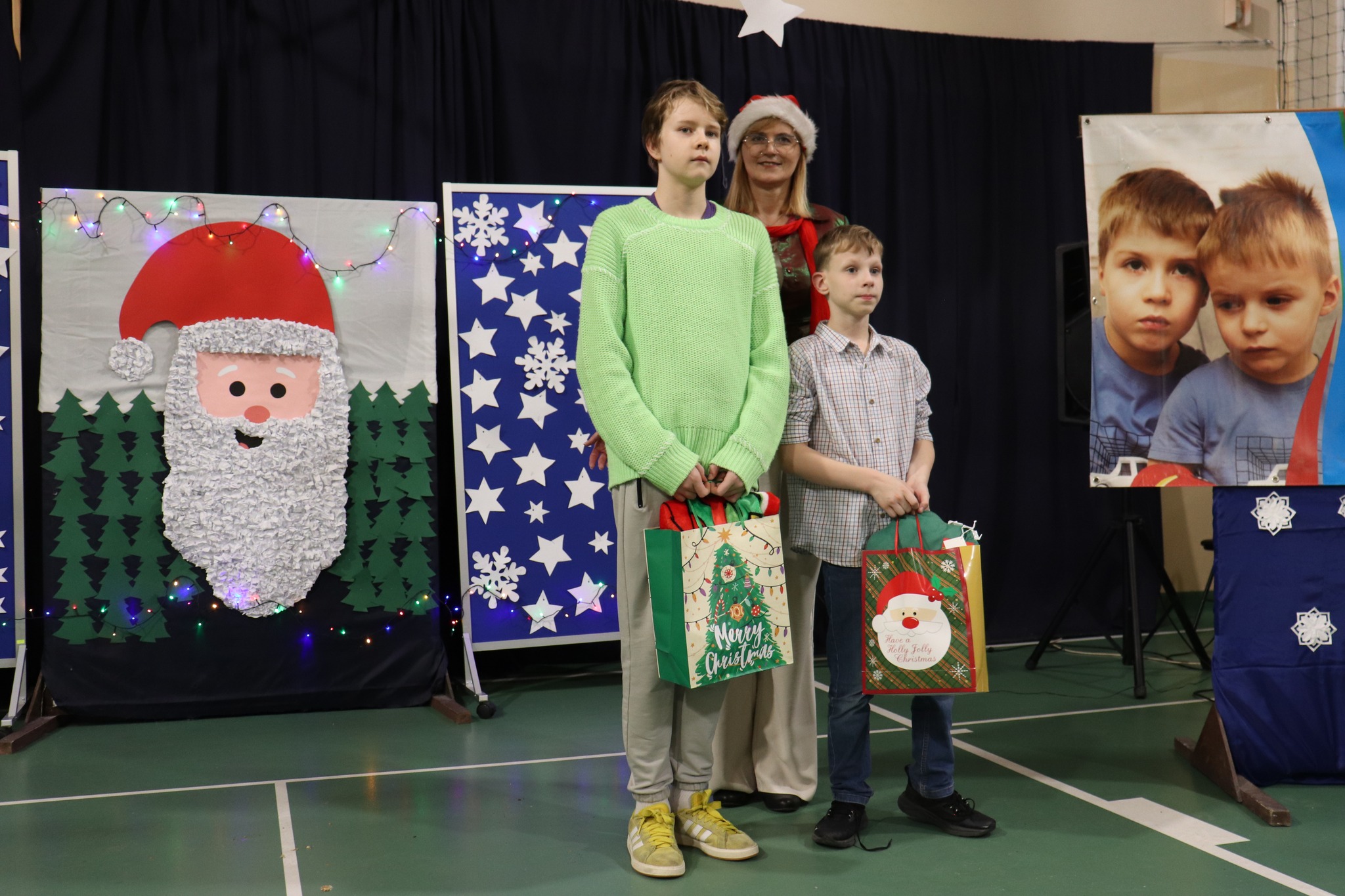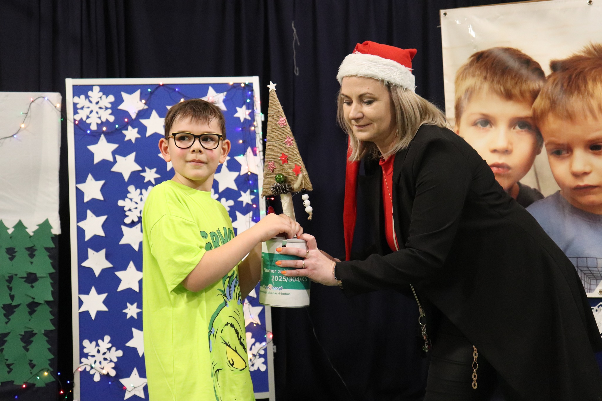 Nasza Trójkowa tradycja ponownie przyciągnęła tłumy dzieci i rodziców tym razem pragnących zasilić szczytny cel: zbiórkę środków na rzecz Adasia i Kubusia ze Skierniewic - braci zmagających się z dystrofią mięśniową Duchenne'a. Występy młodych artystów, kiermasze i licytacje znakomicie się udały, piękne krasnale, stroiki, świąteczne ozdoby, a nawet helikopter (!!!) błyskawicznie znalazły swoich nabywców. Najmłodsi goście również nie narzekali - świetnie zajęli się nimi Trójkowi nauczyciele. Kto miał ochotę, mógł także za drobny datek wrzucony do puszki uraczyć się smakowitymi wypiekami, które zapewniły nasze wspaniałe mamy z Rady Rodziców. Pod koniec imprezy odwiedził nas także pan Michał, tata Adasia i Kubusia, aby podziękować pani dyrektor i całej społeczności naszej szkoły za piękny odruch serca.