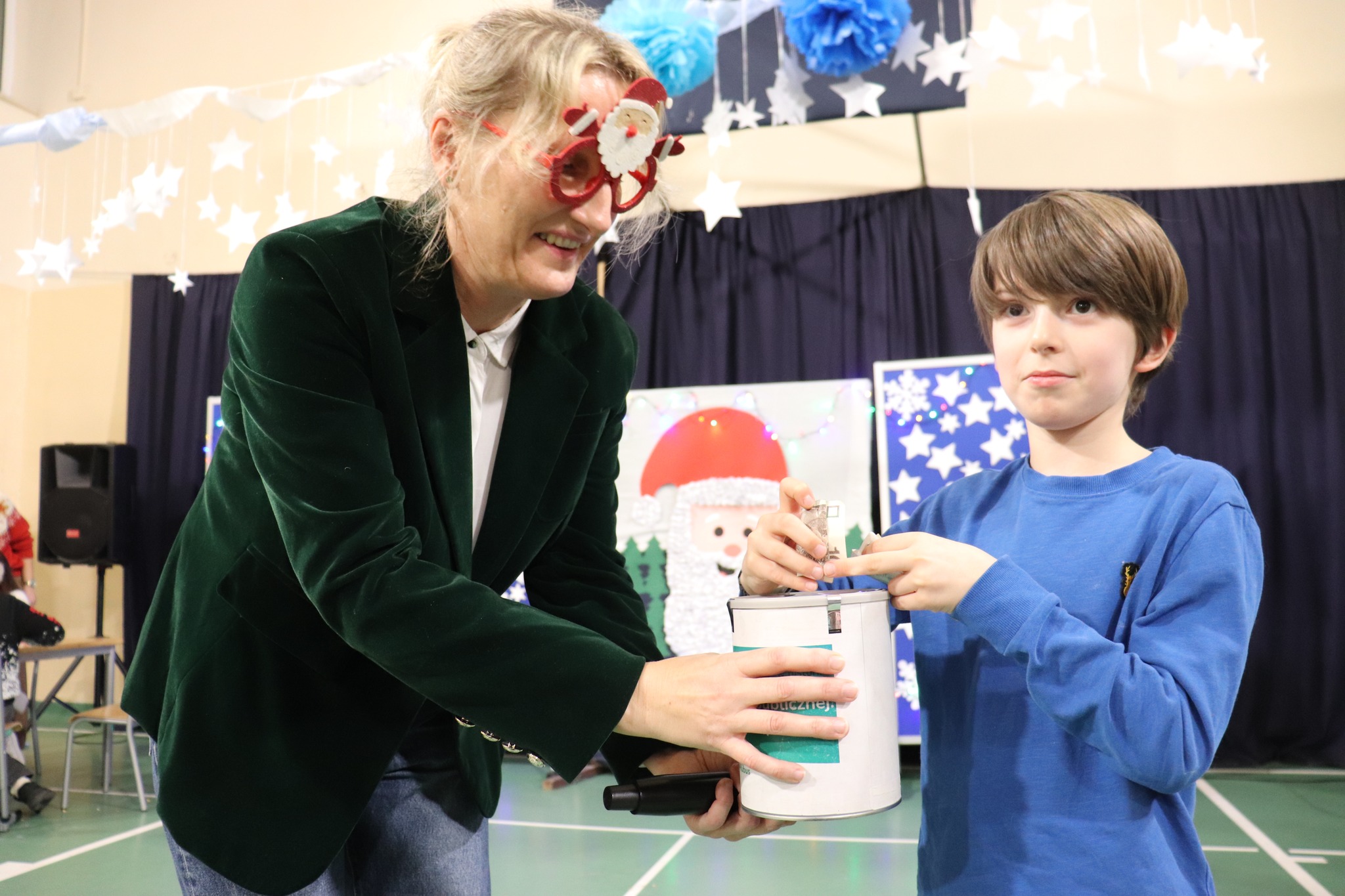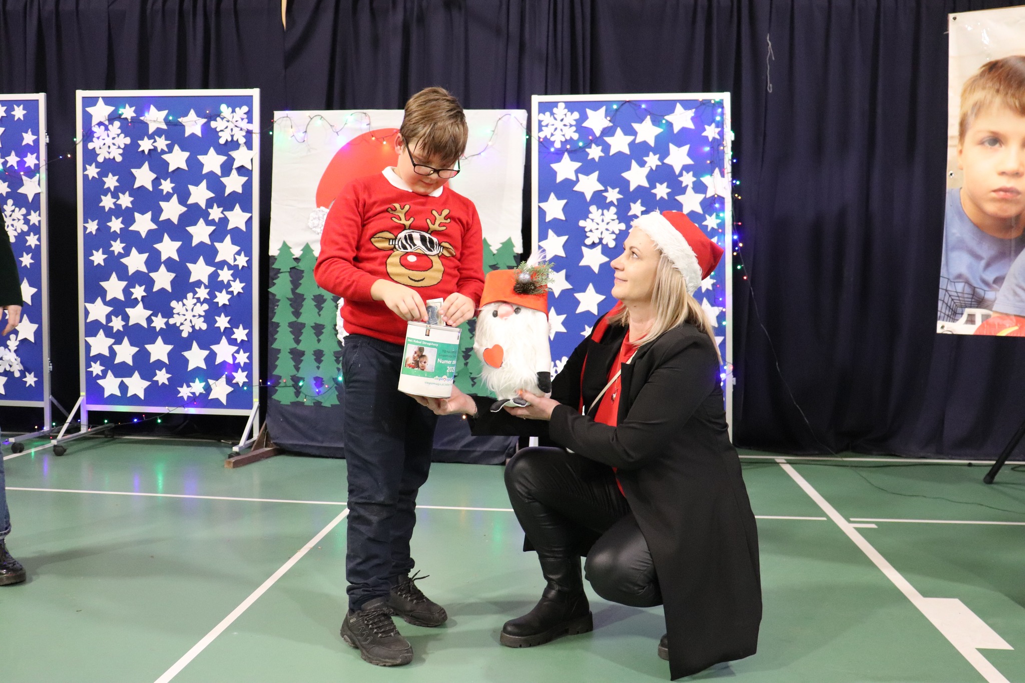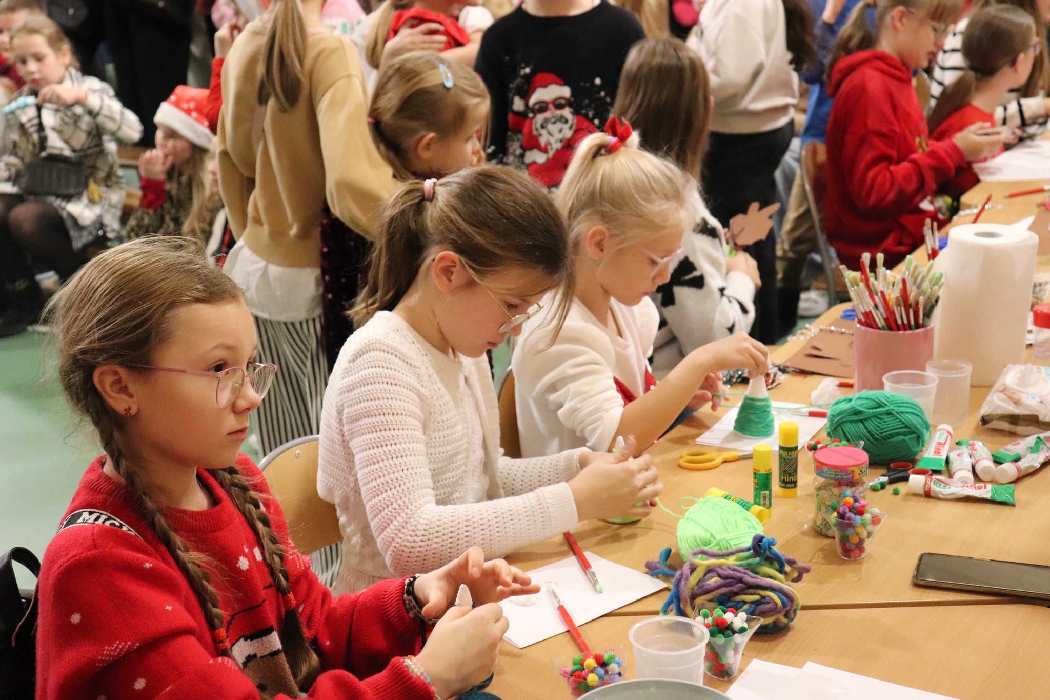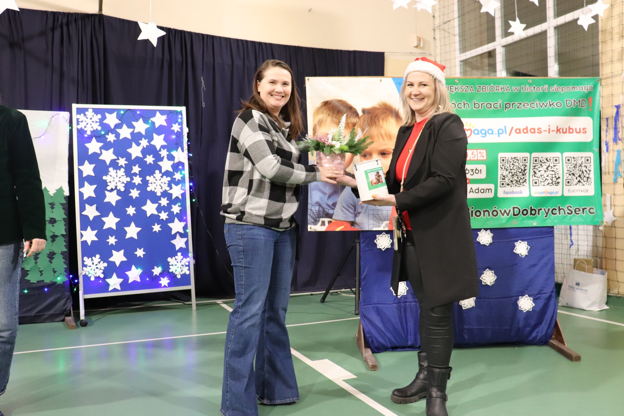 Nasza Trójkowa tradycja ponownie przyciągnęła tłumy dzieci i rodziców tym razem pragnących zasilić szczytny cel: zbiórkę środków na rzecz Adasia i Kubusia ze Skierniewic - braci zmagających się z dystrofią mięśniową Duchenne'a. Występy młodych artystów, kiermasze i licytacje znakomicie się udały, piękne krasnale, stroiki, świąteczne ozdoby, a nawet helikopter (!!!) błyskawicznie znalazły swoich nabywców. Najmłodsi goście również nie narzekali - świetnie zajęli się nimi Trójkowi nauczyciele. Kto miał ochotę, mógł także za drobny datek wrzucony do puszki uraczyć się smakowitymi wypiekami, które zapewniły nasze wspaniałe mamy z Rady Rodziców. Pod koniec imprezy odwiedził nas także pan Michał, tata Adasia i Kubusia, aby podziękować pani dyrektor i całej społeczności naszej szkoły za piękny odruch serca.