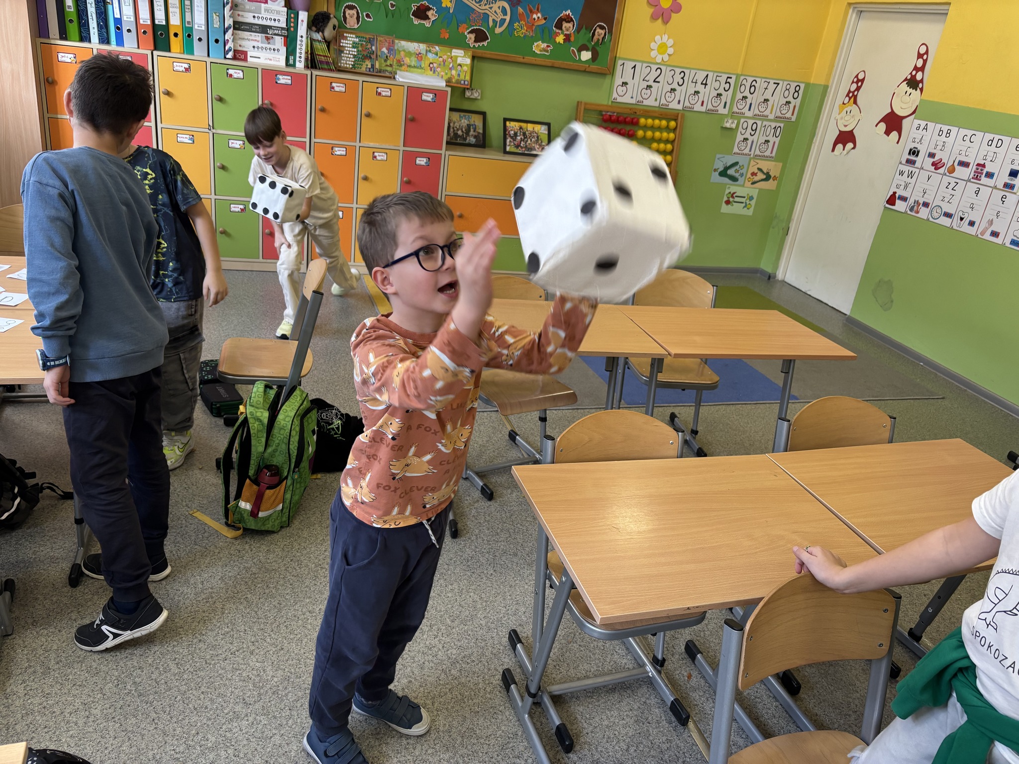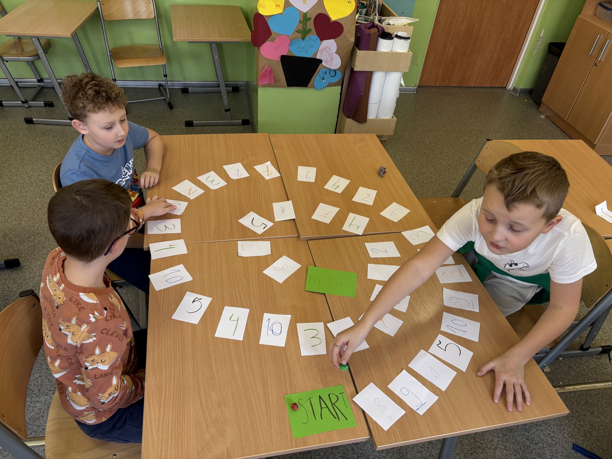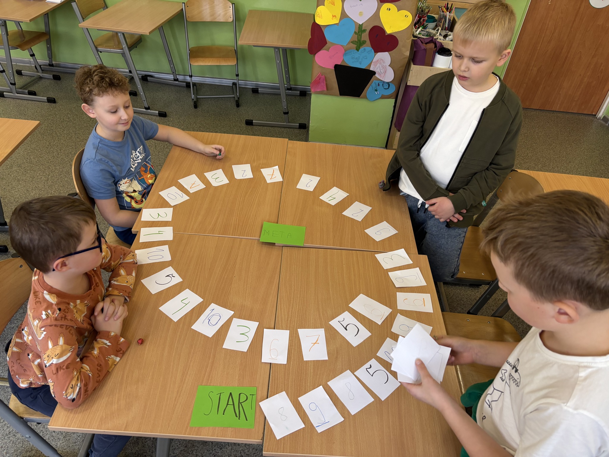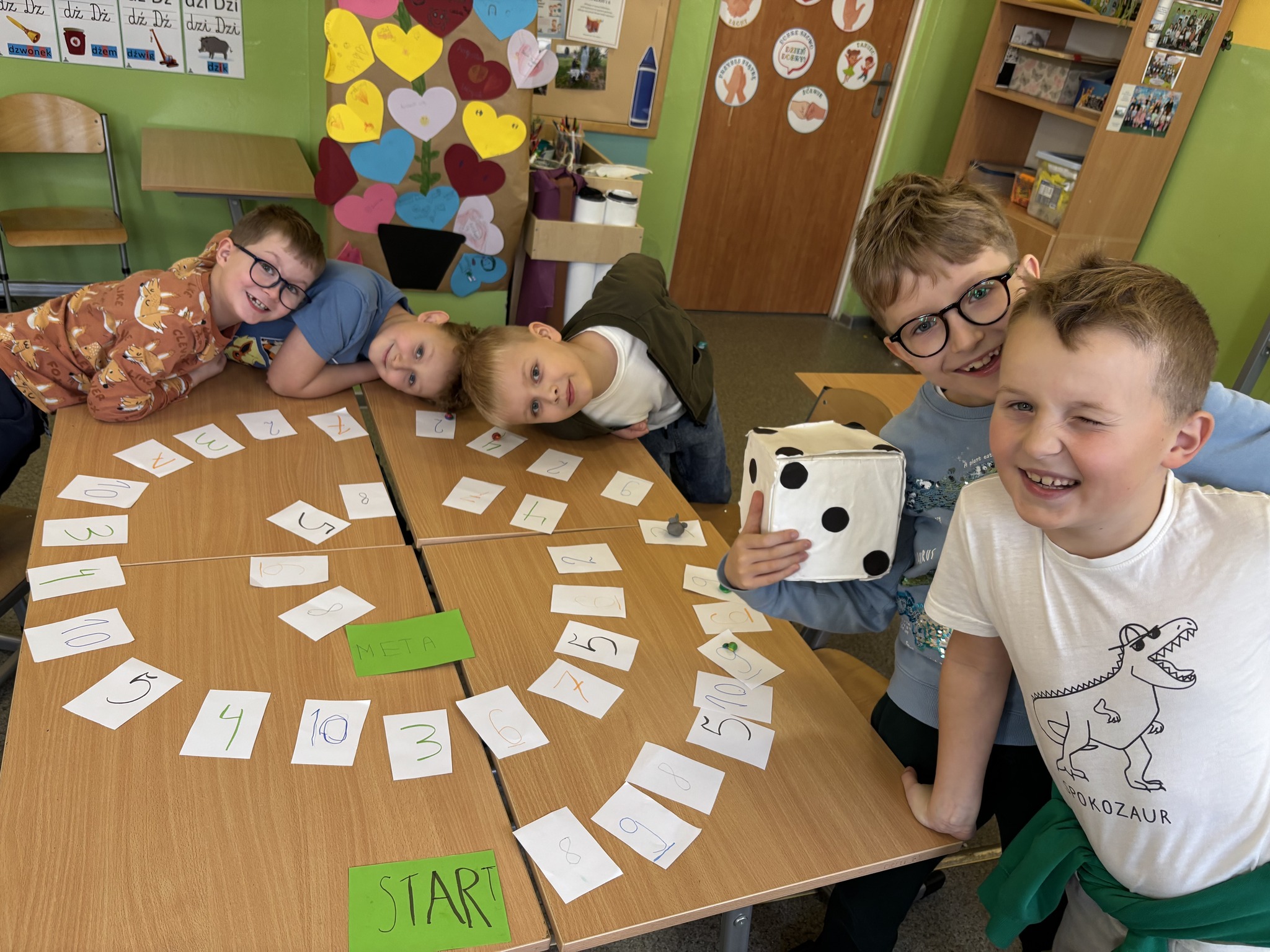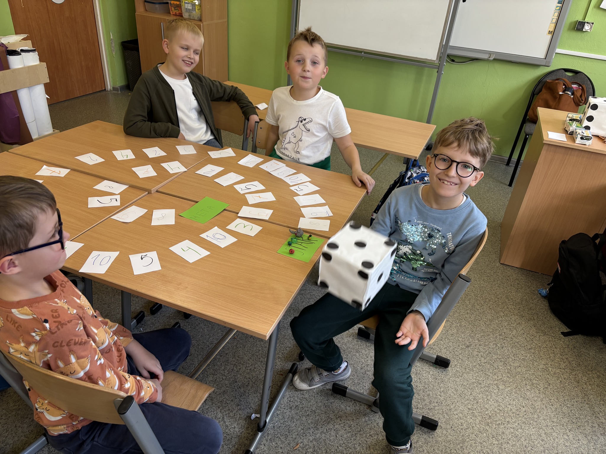 Potem nadszedł czas na najprzyjemniejszą część – rozgrywkę! Emocji i radości było co niemiara! „Matematyczny ślimak” to gra uniwersalna – można dzięki niej ćwiczyć dodawanie, odejmowanie i mnożenie, a przy tym świetnie się bawić. Brawo dla młodych matematyków za kreatywność, współpracę i wspaniałą zabawę!