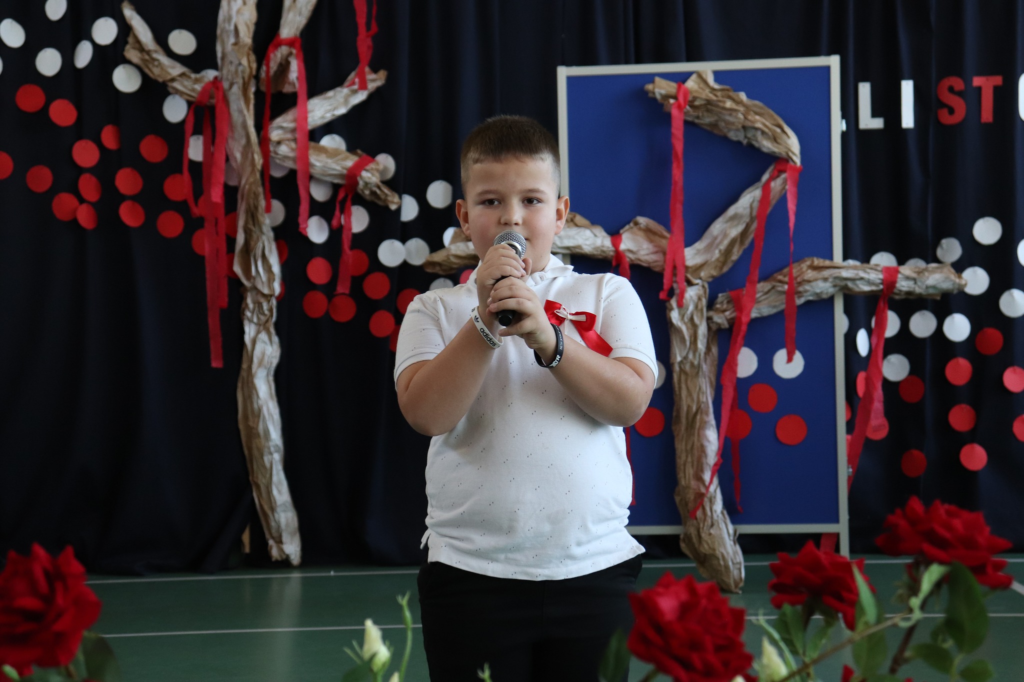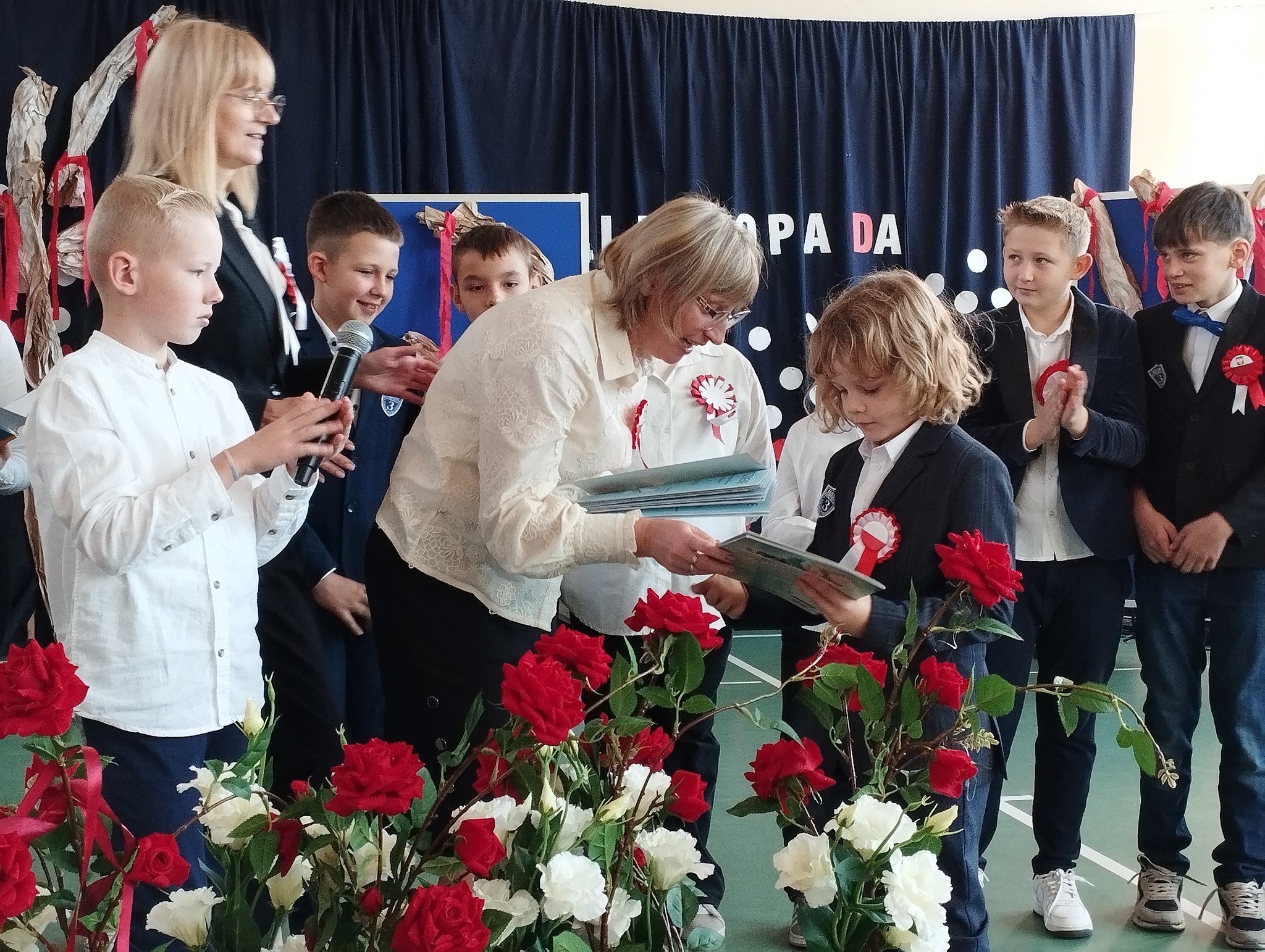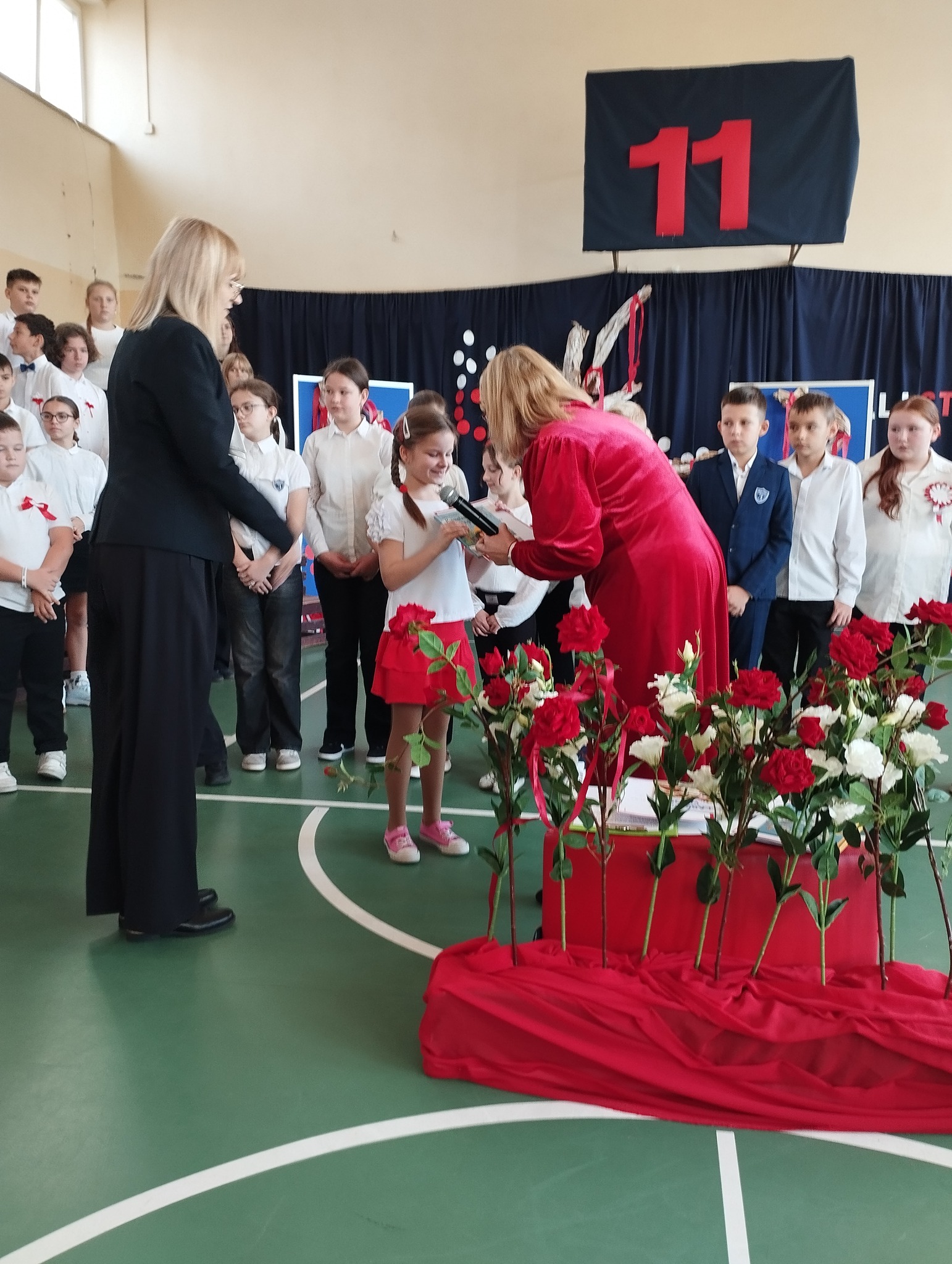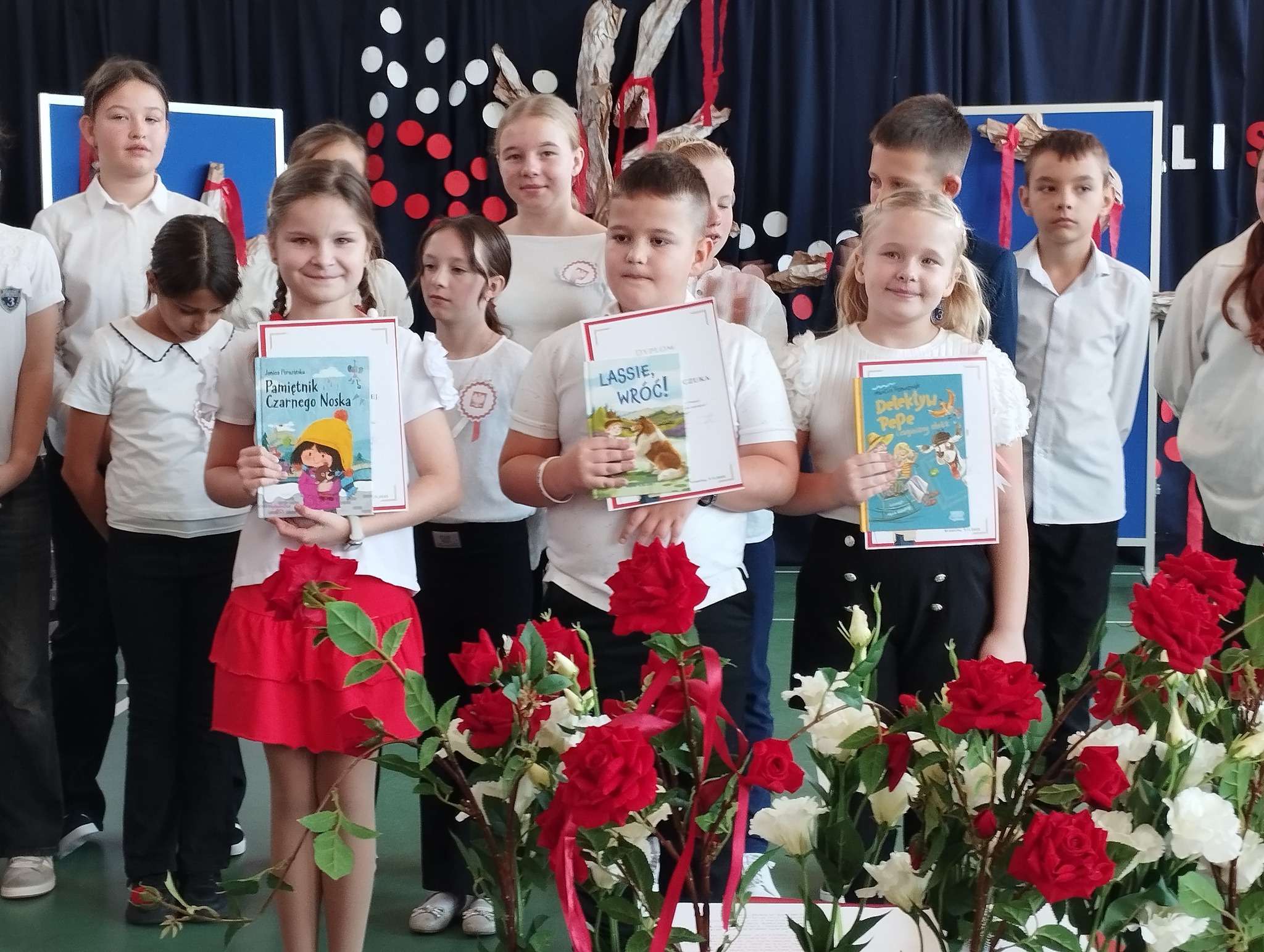 Uroczystości towarzyszyło wręczenie nagród za niedawno przeprowadzone szkolne konkursy: konkurs recytatorski poezji patriotycznej i biblioteczny konkurs plastyczny "Mały Molik".