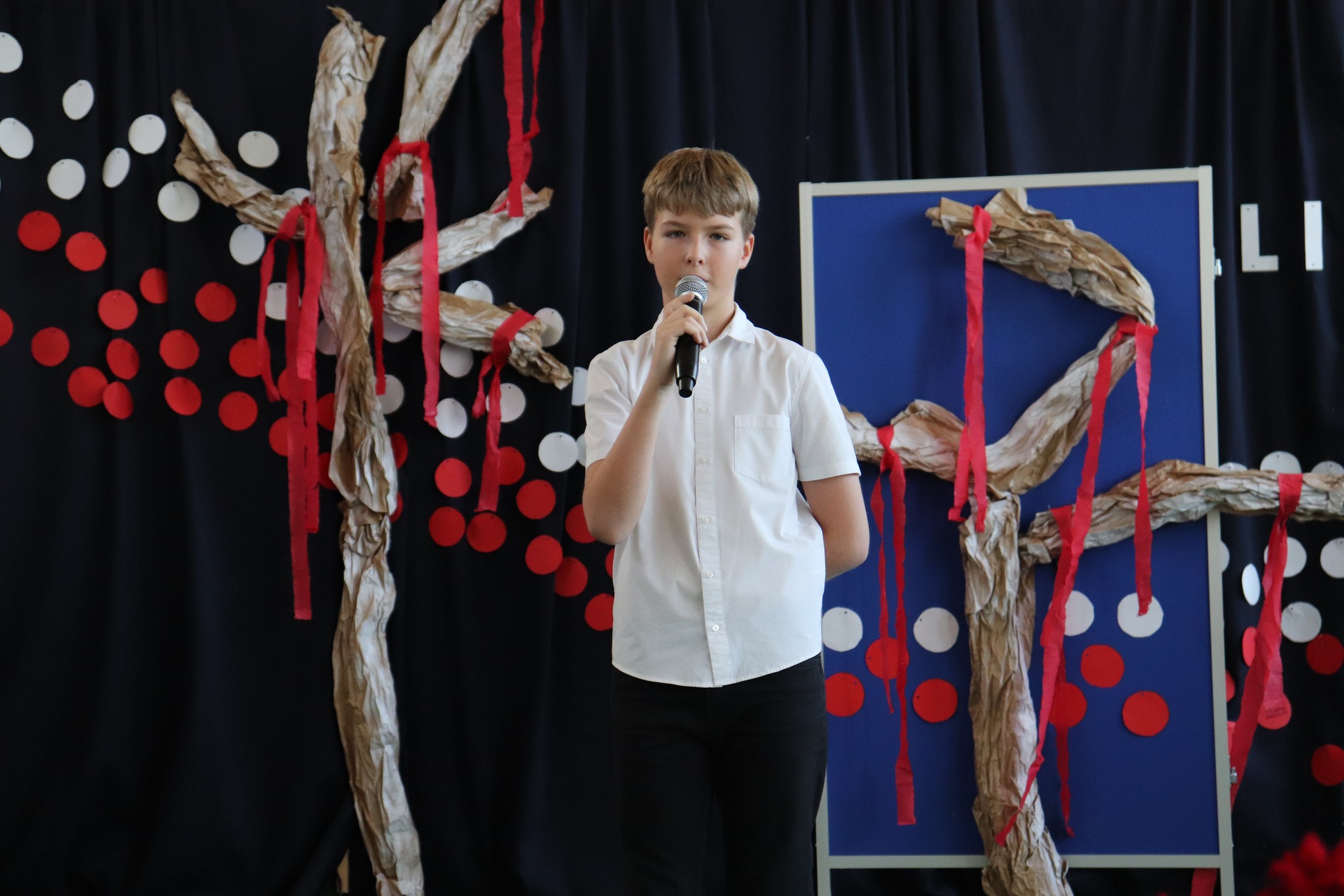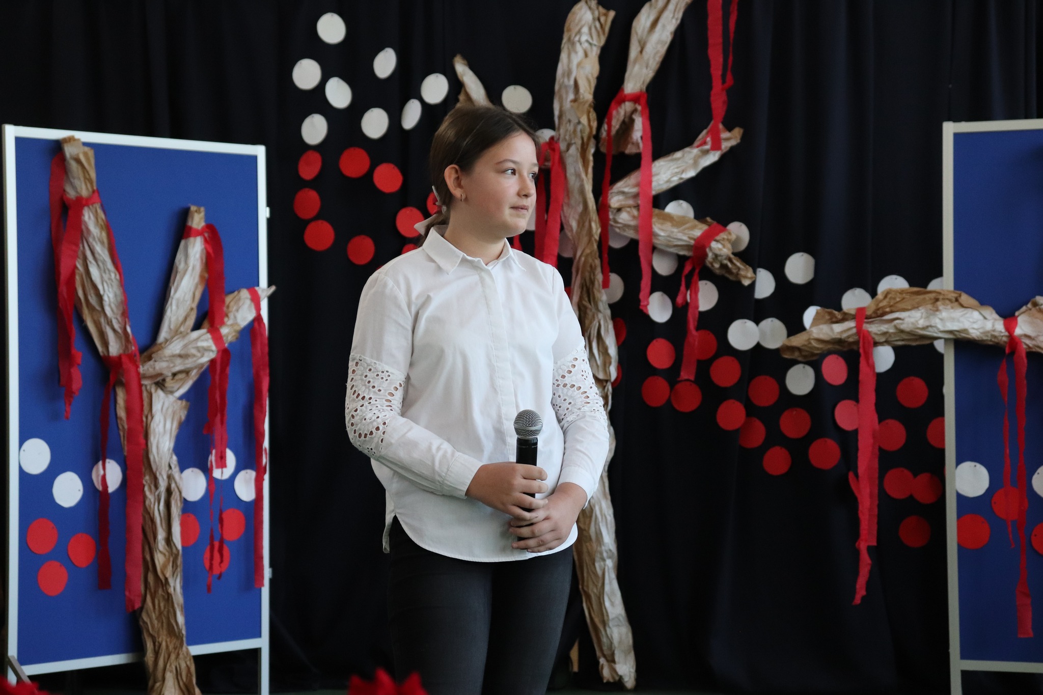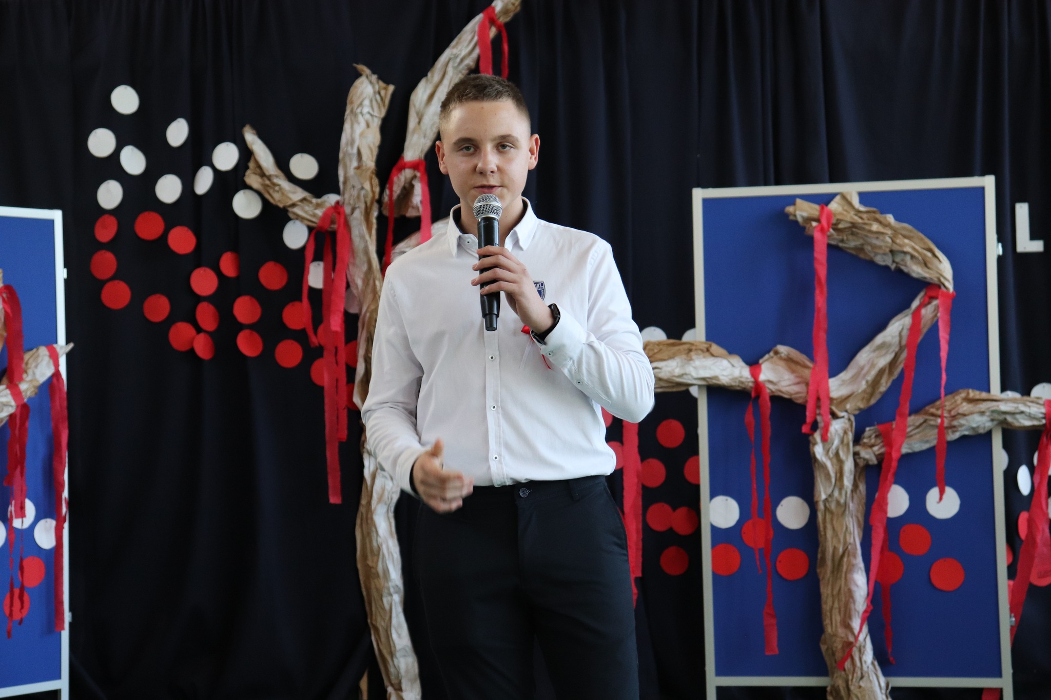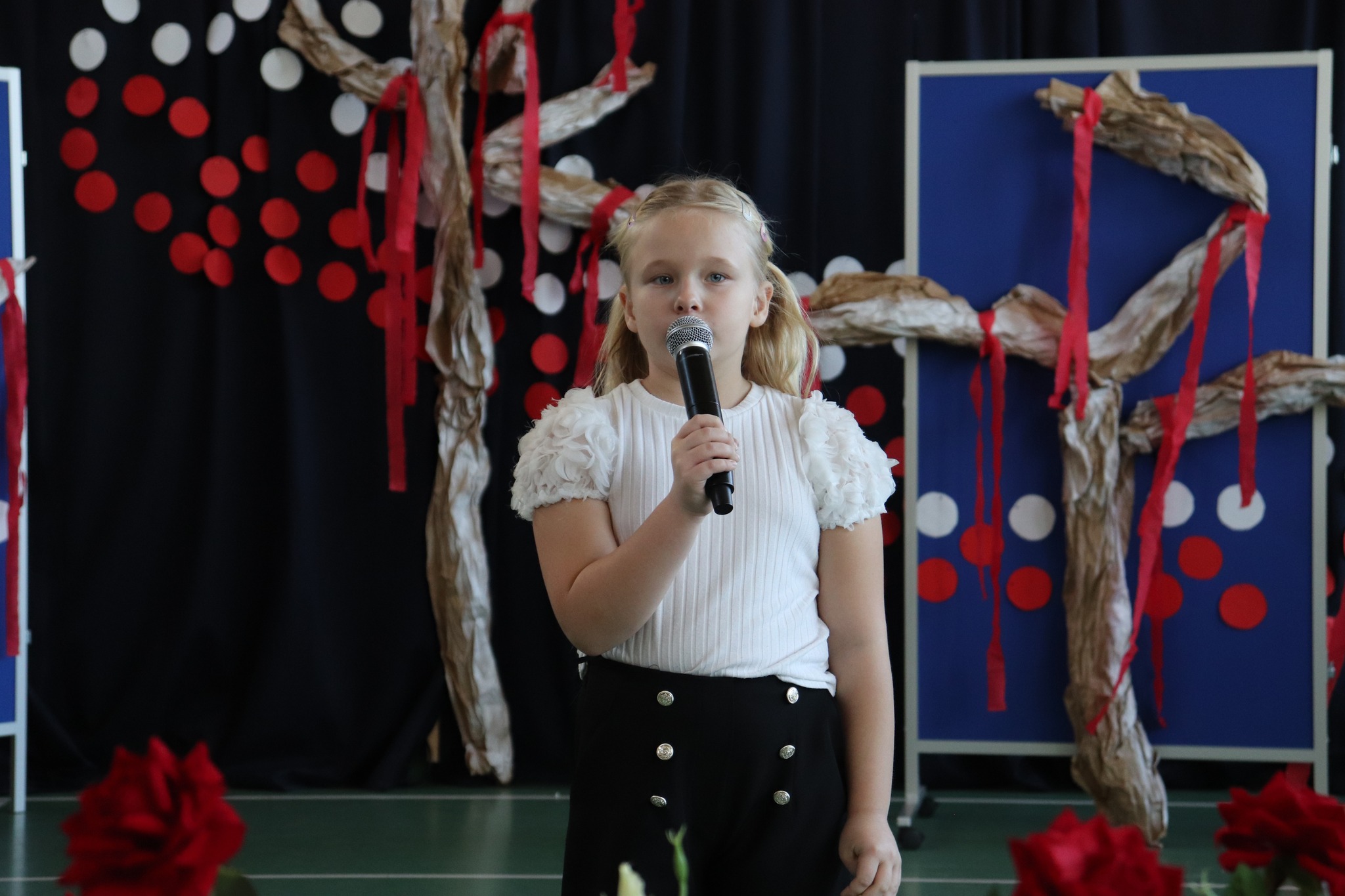 Uroczystości towarzyszyło wręczenie nagród za niedawno przeprowadzone szkolne konkursy: konkurs recytatorski poezji patriotycznej i biblioteczny konkurs plastyczny "Mały Molik".