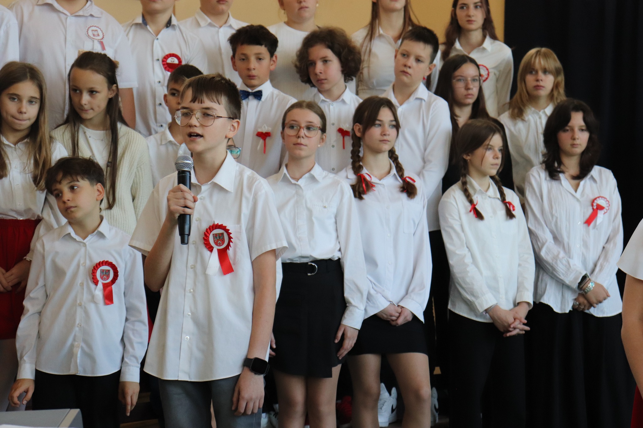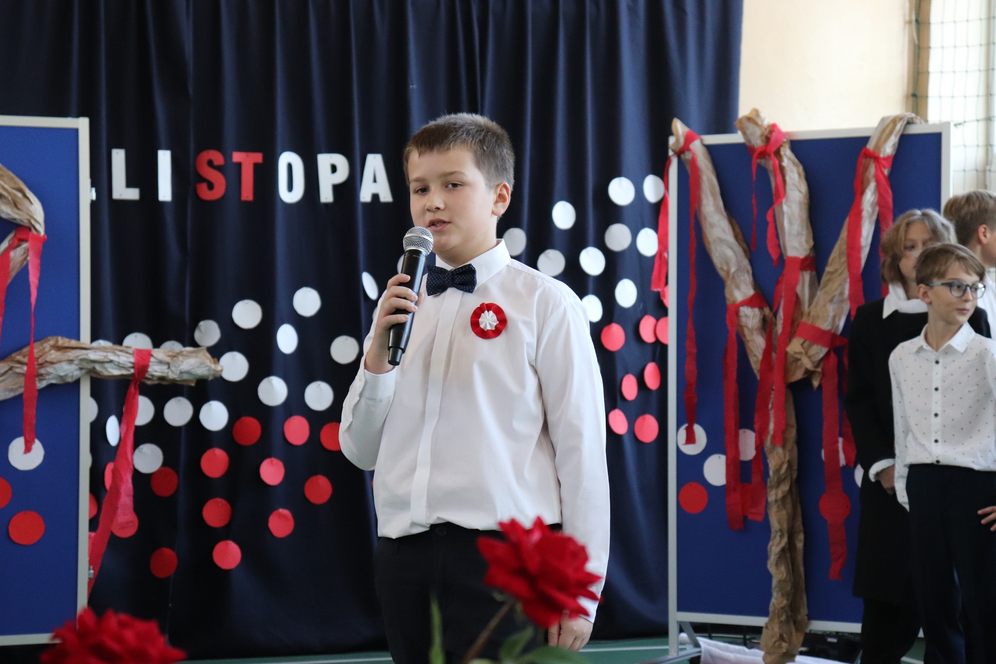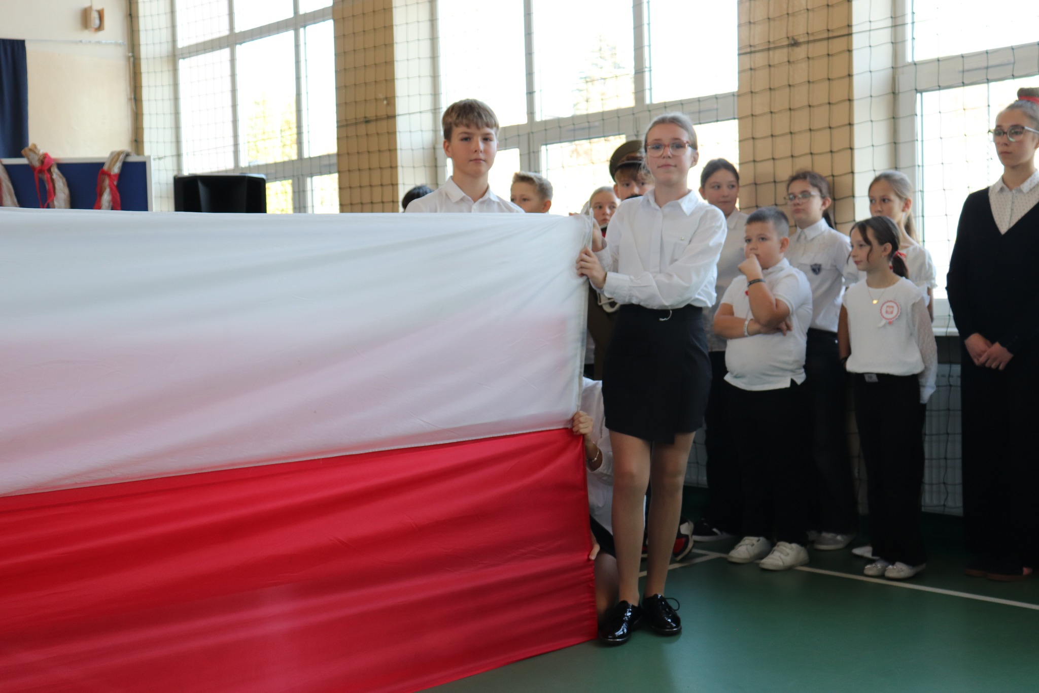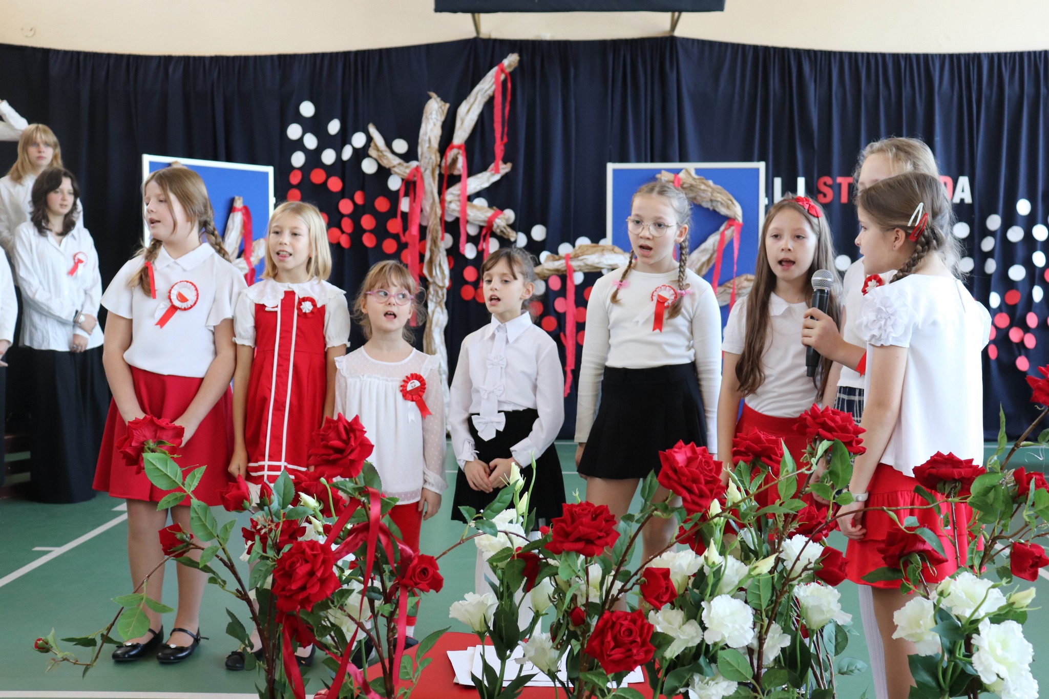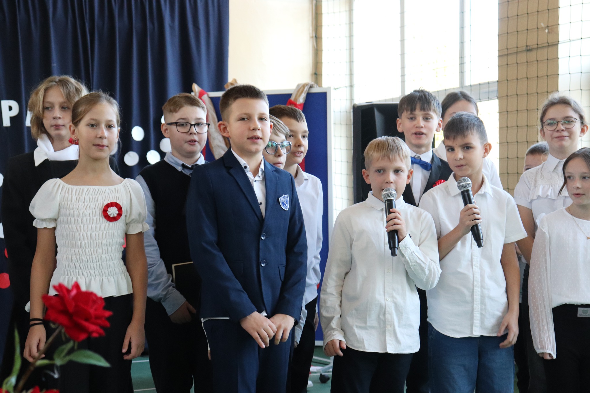 Świętowanie Narodowego Święta Niepodległości rozpoczęliśmy w piątek 7 listopada. Od godz. 10 maluchy z klas 0-3, a od godz. 11 świętowali starszacy z klas 4 - 8. Druga część uroczystości rozpoczęła się od wspólnego odśpiewania trzech zwrotek Mazurka Dąbrowskiego w ramach akcji Ministerstwa Edukacji Narodowej "Szkoła do hymnu". Po krótkiej przemowie pani dyrektor uczniowie klas piątych i szóstych oraz chór zaprezentowali wzruszające i pouczające widowisko słowno - muzyczne ilustrujące dzieje odzyskania przez Polskę niepodległości, które zakończył imponujący "taniec z szarfami" w narodowych barwach. Spektakl przygotowali wraz z uczniami pp. M. Dziubek, U. Malinowska, A. Tyburska, A. Jędrzejewski i Ł. Radwański.