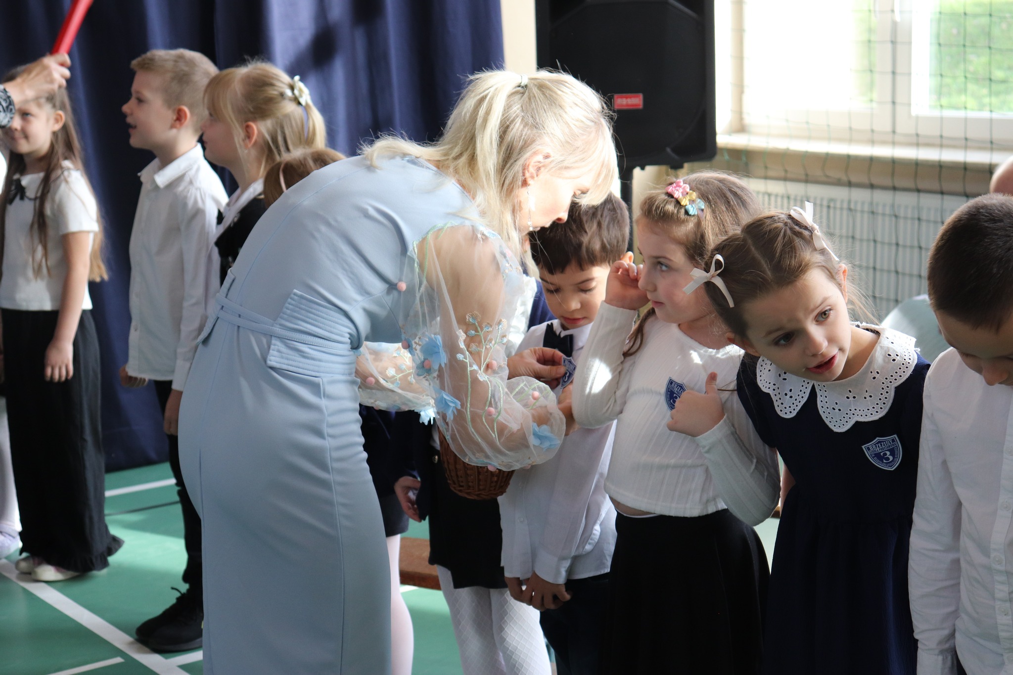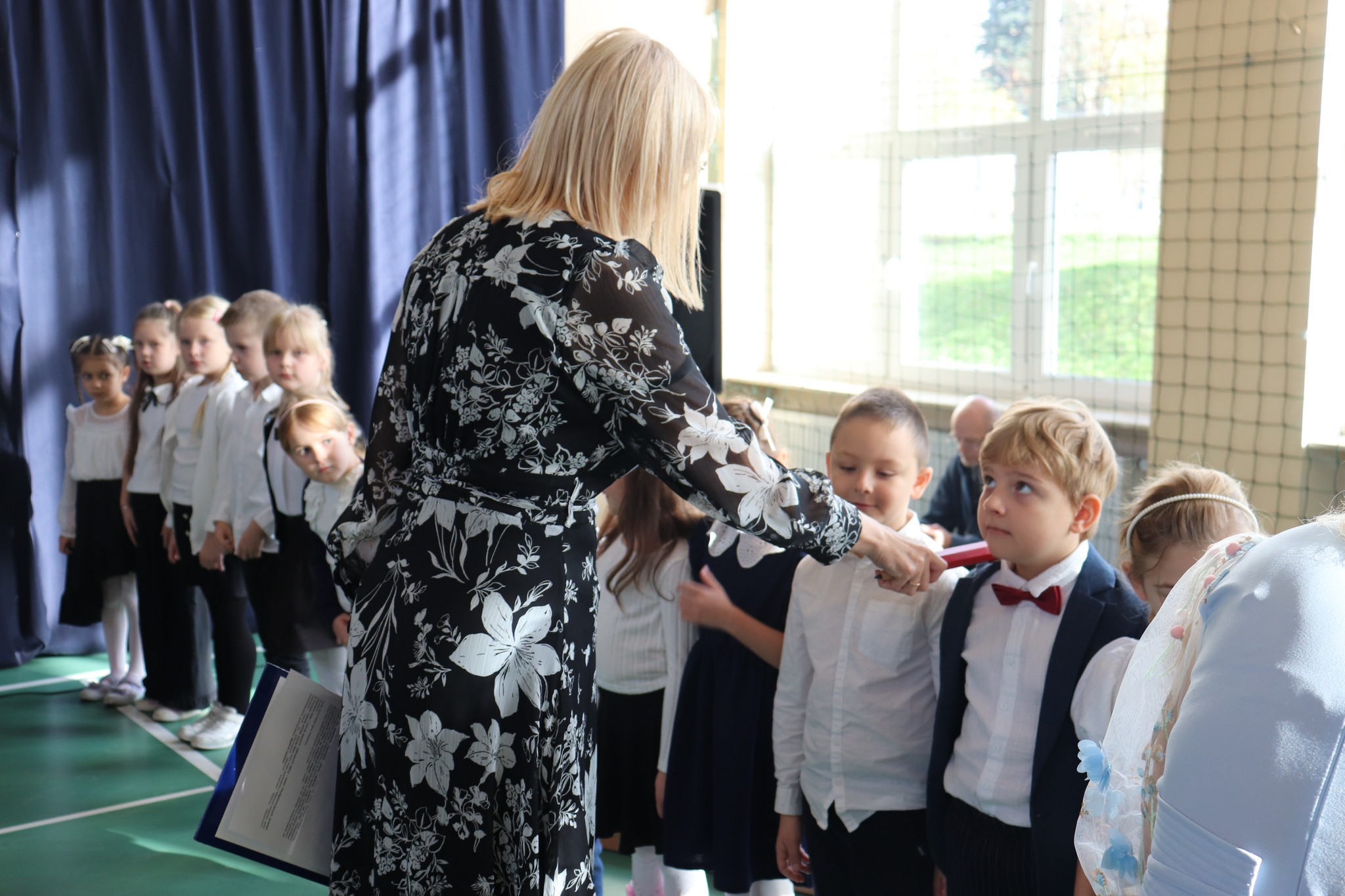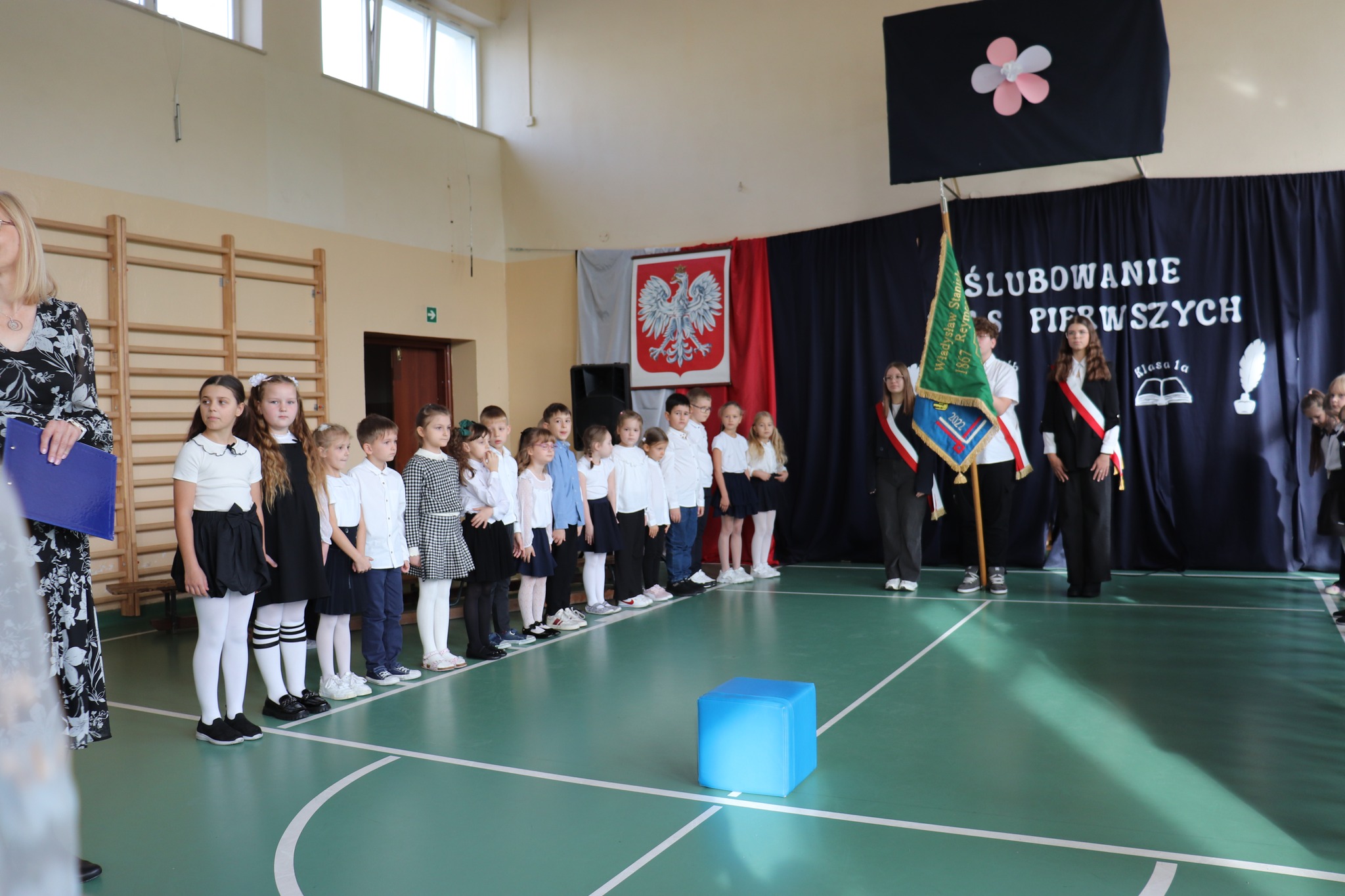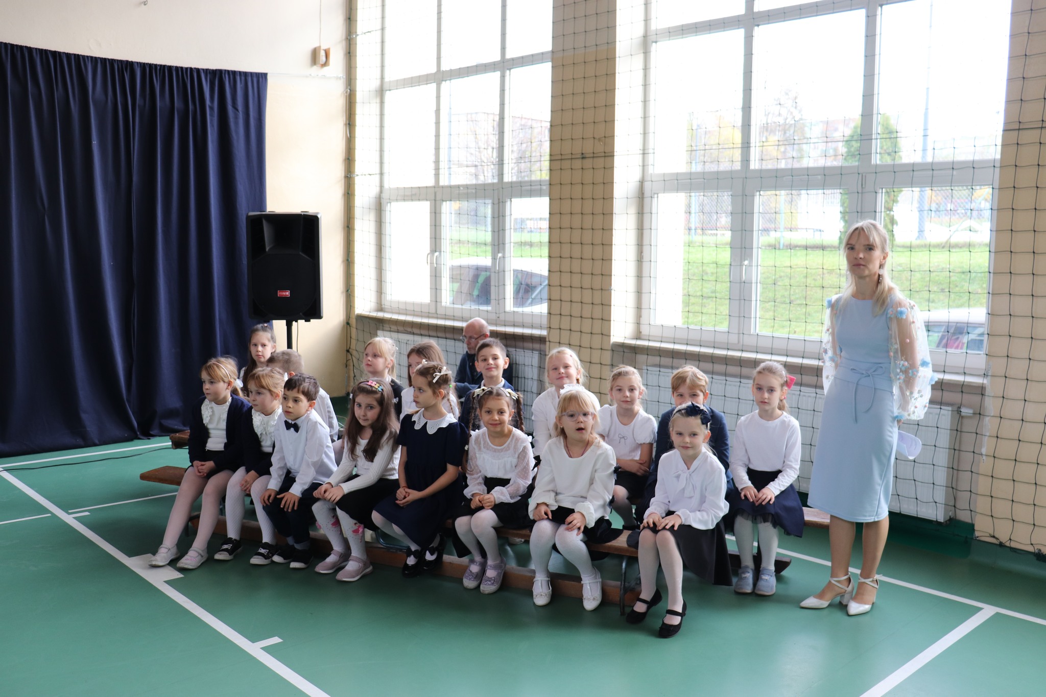 Dnia 30 października 2025 r. nasi pierwszoklasiści zostali pasowani przez Panią Dyrektor i złożyli przysięgę przed gronem zaproszonych gości. Uroczystość odbyła się w sali gimnastycznej, gdzie reprezentanci Samorządu Uczniowskiego powitali młodszych kolegów w szkolnych progach oraz zadali im kilka pytań, sprawdzając gotowość do nauki i życia w szkole.