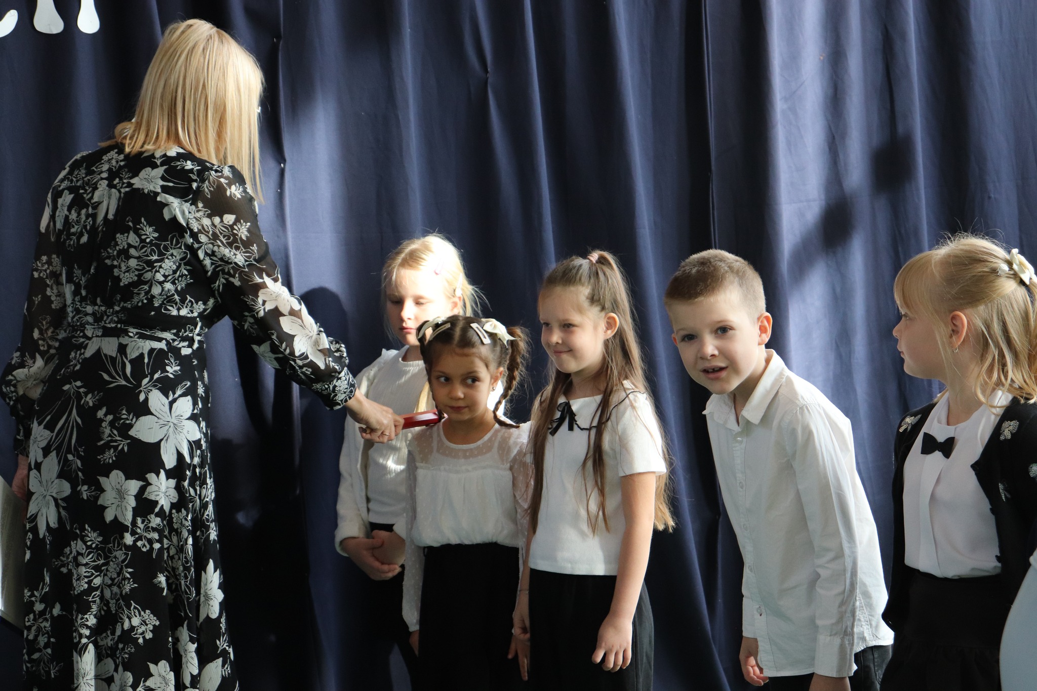 Po krótkiej prezentacji w formie inscenizacji, śpiewu i układu tanecznego pierwszaki oficjalnie zostały przyjęte do społeczności szkolnej. Goście i przedstawiciele Samorządu Uczniowskiego życzyli im sukcesów w nauce.