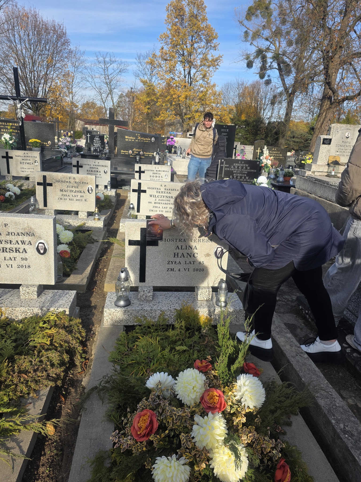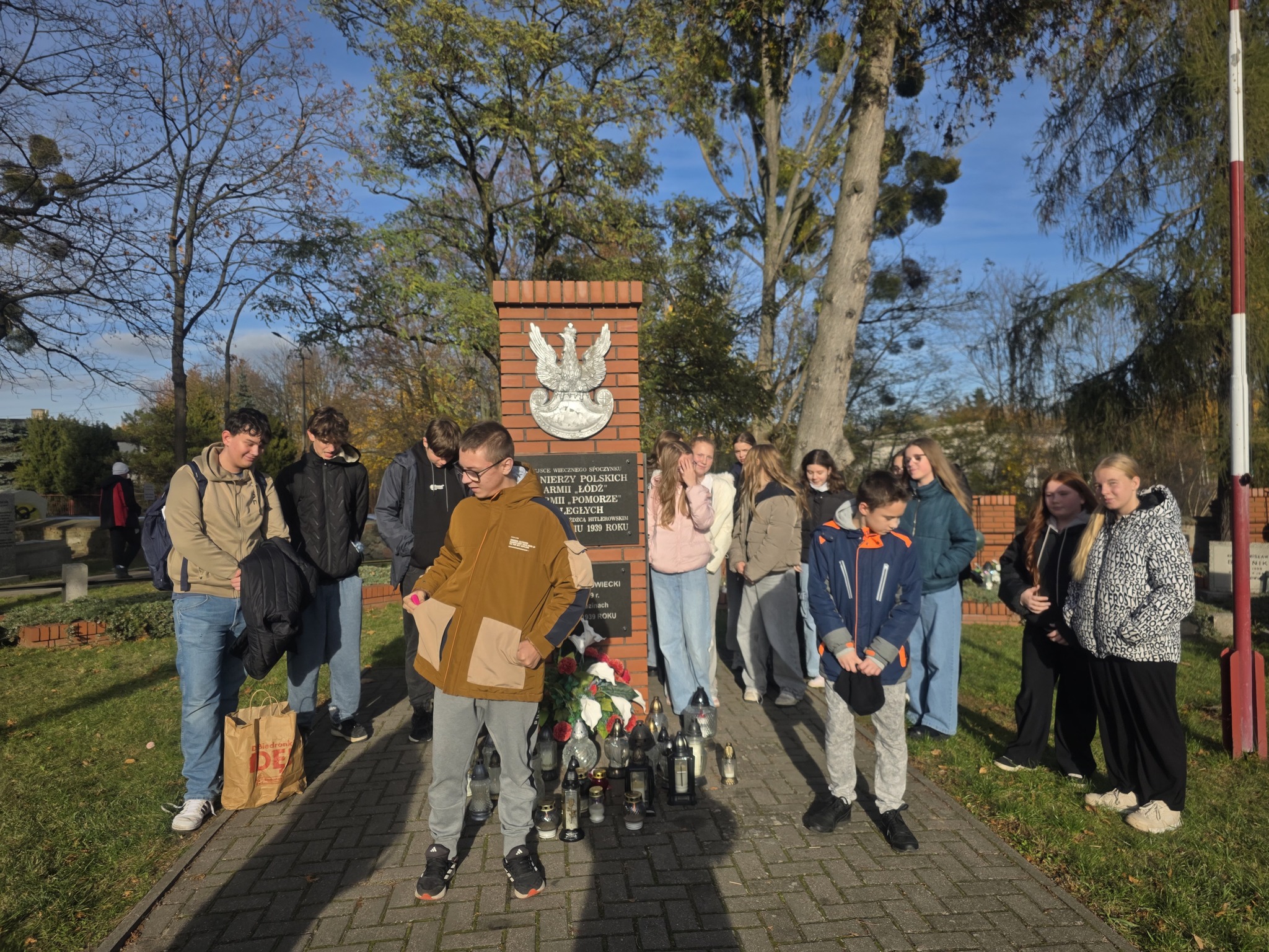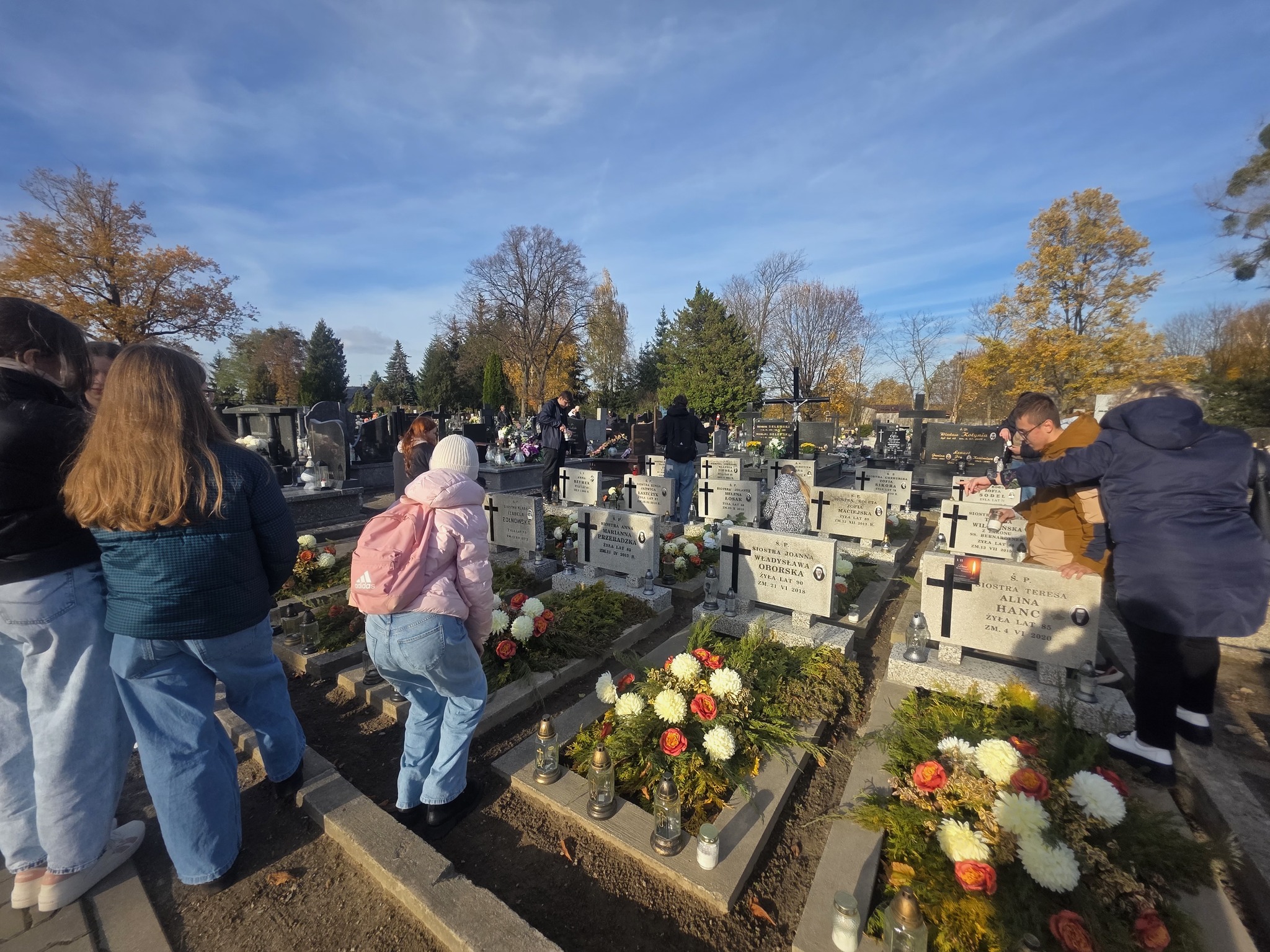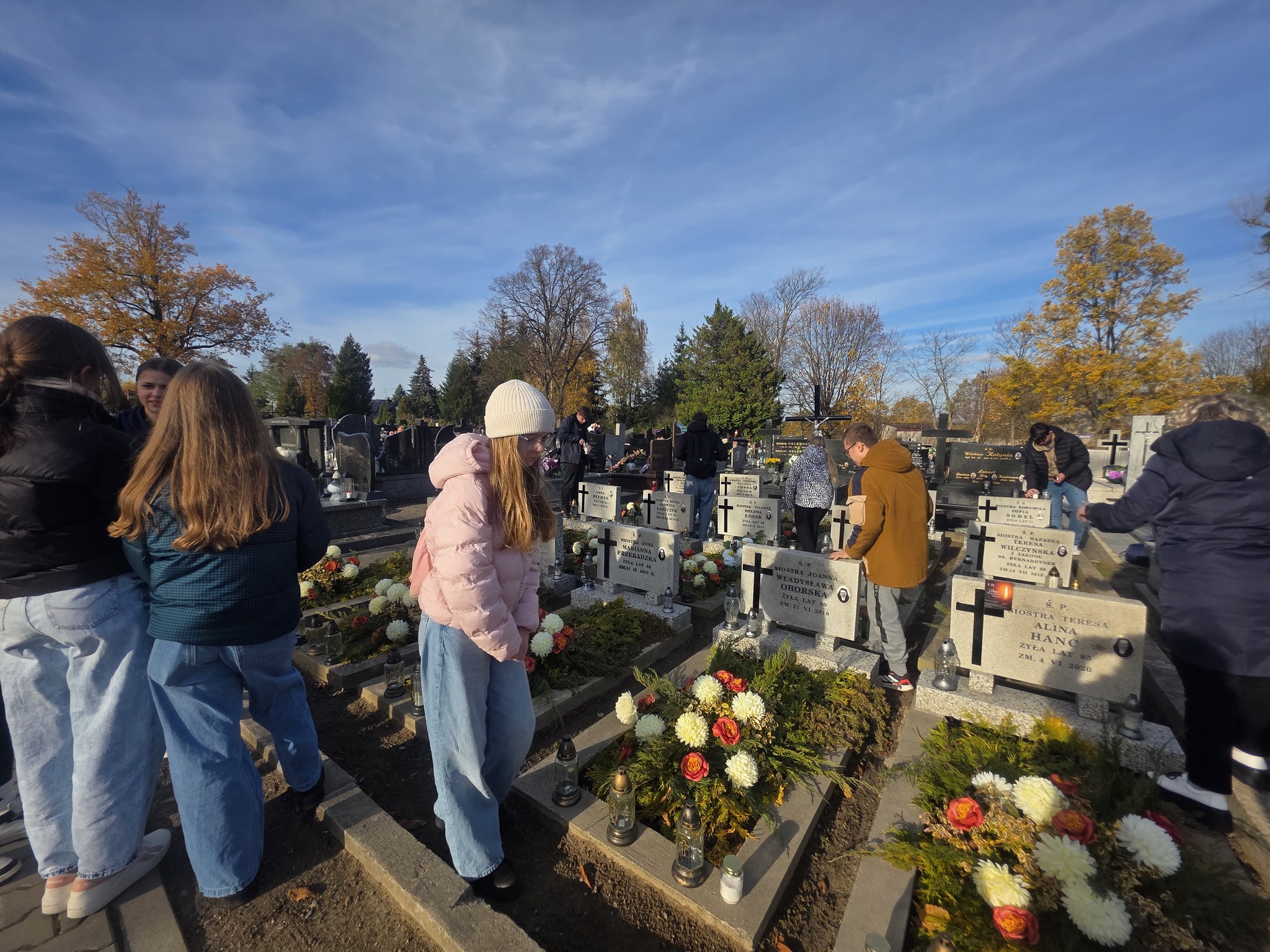 Koniec października to corocznie wielkie sprzątanie cmentarzy przed uroczystością Wszystkich Świętych. W piątek 31 października, w piękną, słoneczną pogodę, nasi wolontariusze i wolontariuszki odwiedzili groby na cmentarzu parafialnym w Brzezinach. Oddaliśmy cześć zmarłym pracownikom naszej szkoły, siostrom bernardynkom i oczywiście poległym żołnierzom, obrońcom naszej Ojczyzny.