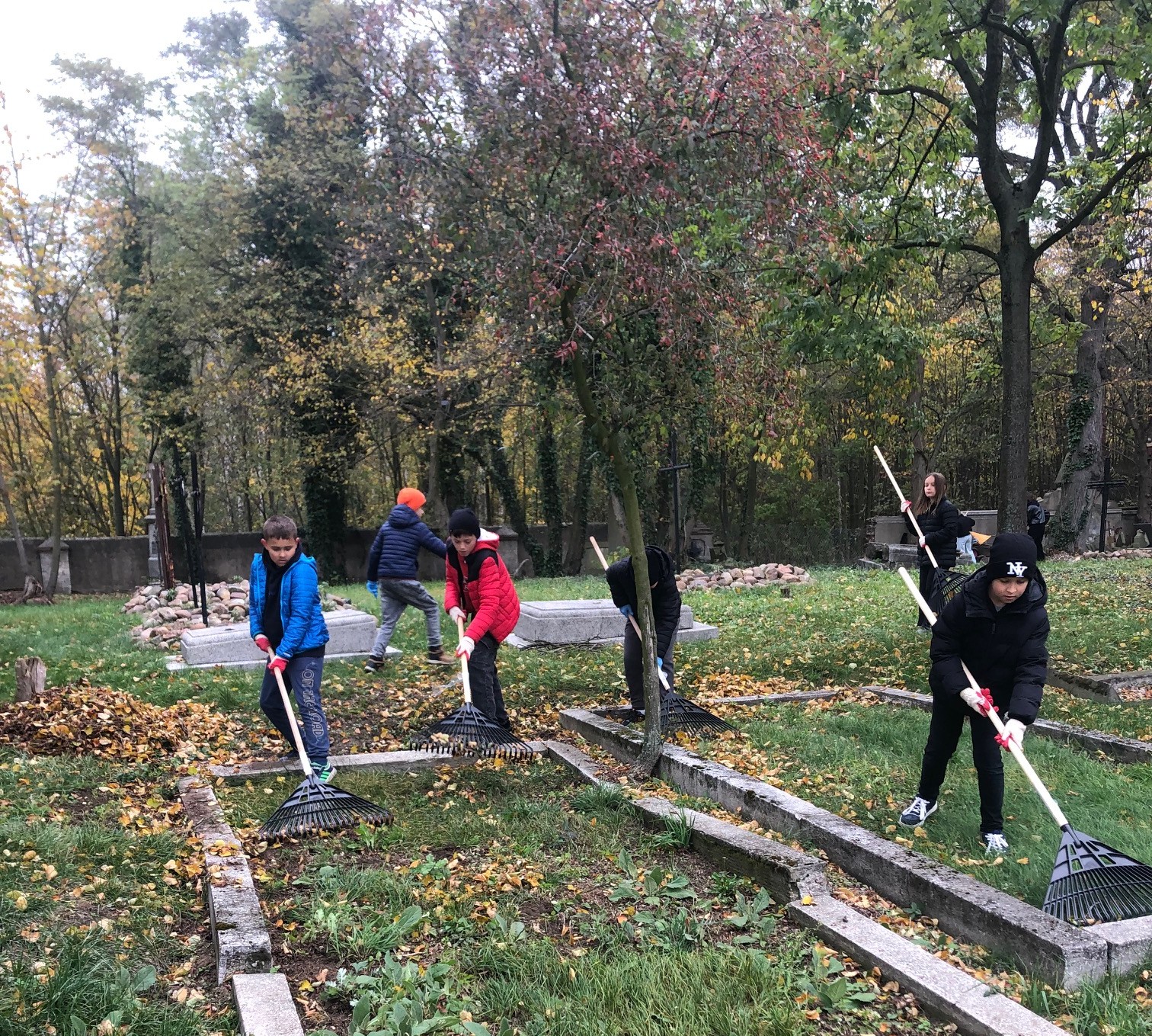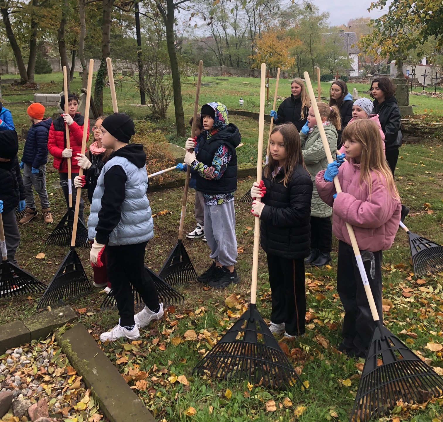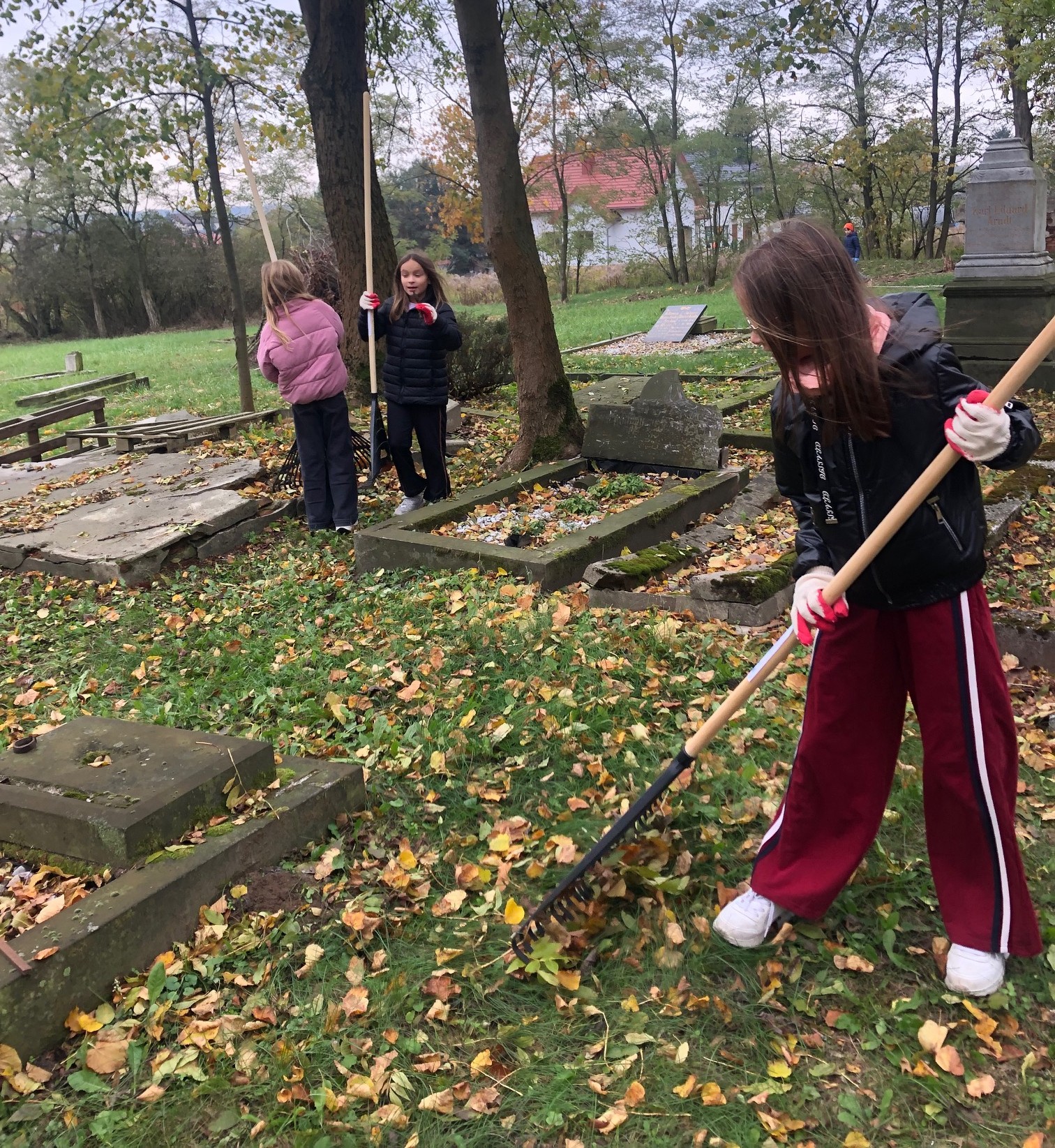 Jak każdego roku w październiku nasi uczniowie udali się na stary cmentarz ewangelicki w Brzezinach, tym razem była to klasa 4b i trzy dziewczyny z klas 8 - Samorząd Uczniowski. Akcja sprzątania cmentarzy jest dla nas ważna, gdyż pamięć należy się tym, którzy dawniej mieszkali na naszych ziemiach. Prace porządkowe przebiegały bardzo sprawnie i w miłej atmosferze. Na koniec dzieci zostały obdarowane przez p. Kacpra Buldeckiego słodkościami. Serdecznie dziękujemy.
