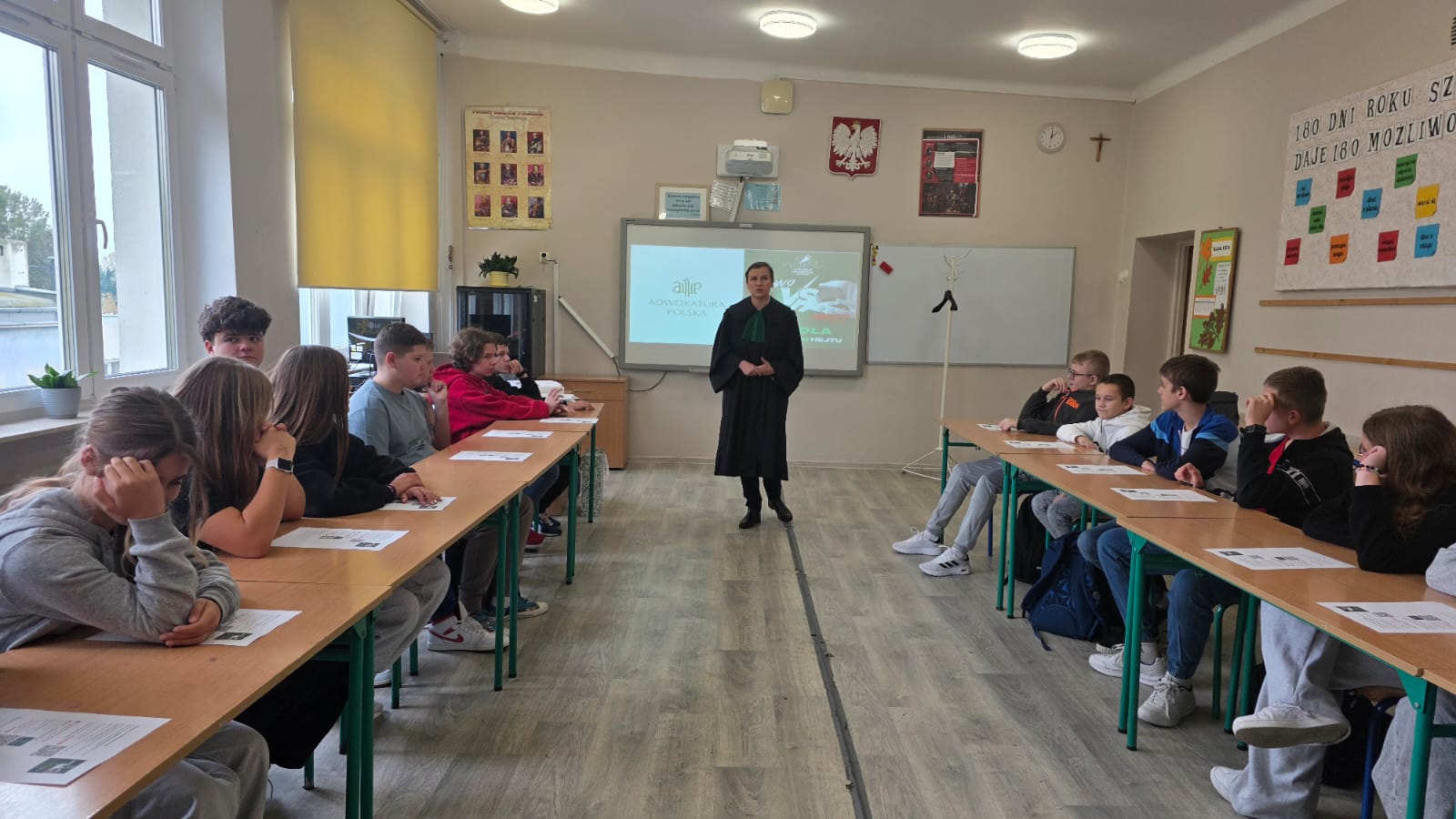Kilka dni temu uczniowie klas siódmych i ósmych naszej szkoły uczestniczyli w niezwykle interesujących warsztatach z mecenas Agatą Kubicką, prawniczką o bogatym doświadczeniu, specjalizującą się w wielu dziedzinach prawa i oferującą pomoc prawną w obszarach takich jak prawo rodzinne, spadkowe, pracy, odszkodowawcze czy prawo cywilne. Tematem spotkania była cyberprzemoc – zjawisko, które niestety coraz częściej dotyczy młodych ludzi.
