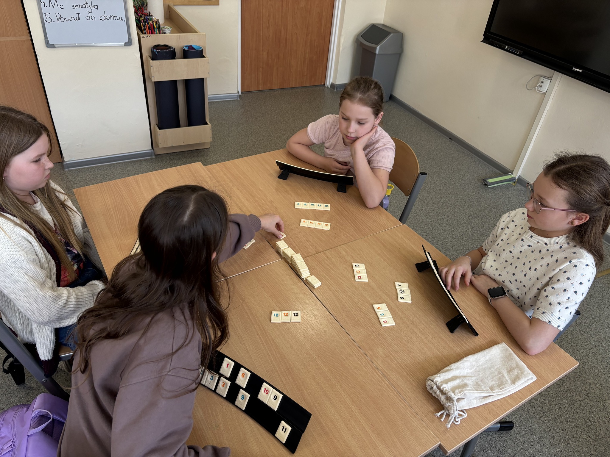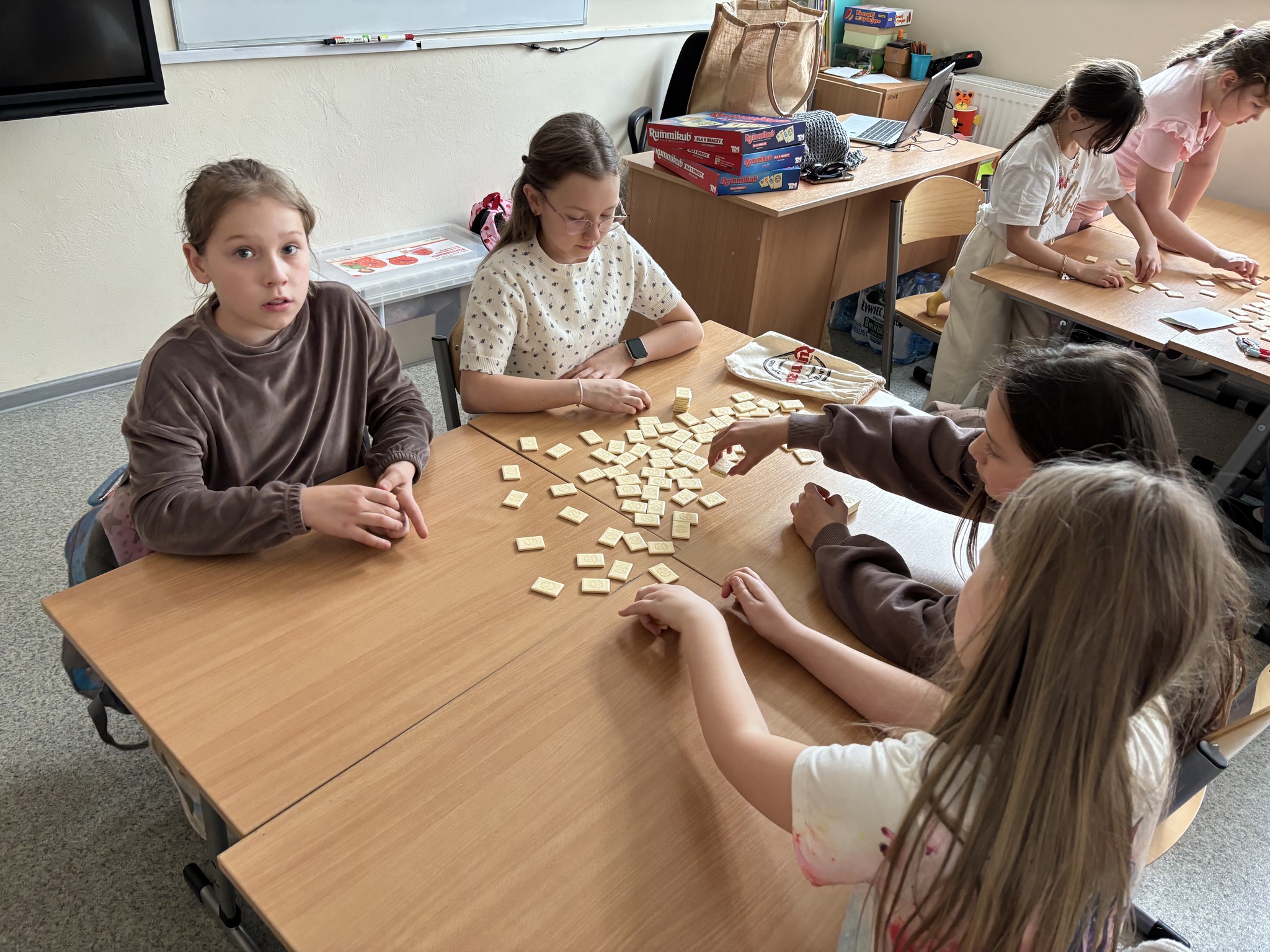 Celem spotkania było wprowadzenie naszych uczniów w fascynujący świat tej popularnej gry. Pani Małgosia przywiozła ze sobą zestawy do gry i poświęciła swój prywatny czas, aby zaprezentować uczniom zasady Rummikuba oraz zachęcić ich do wspólnej zabawy.