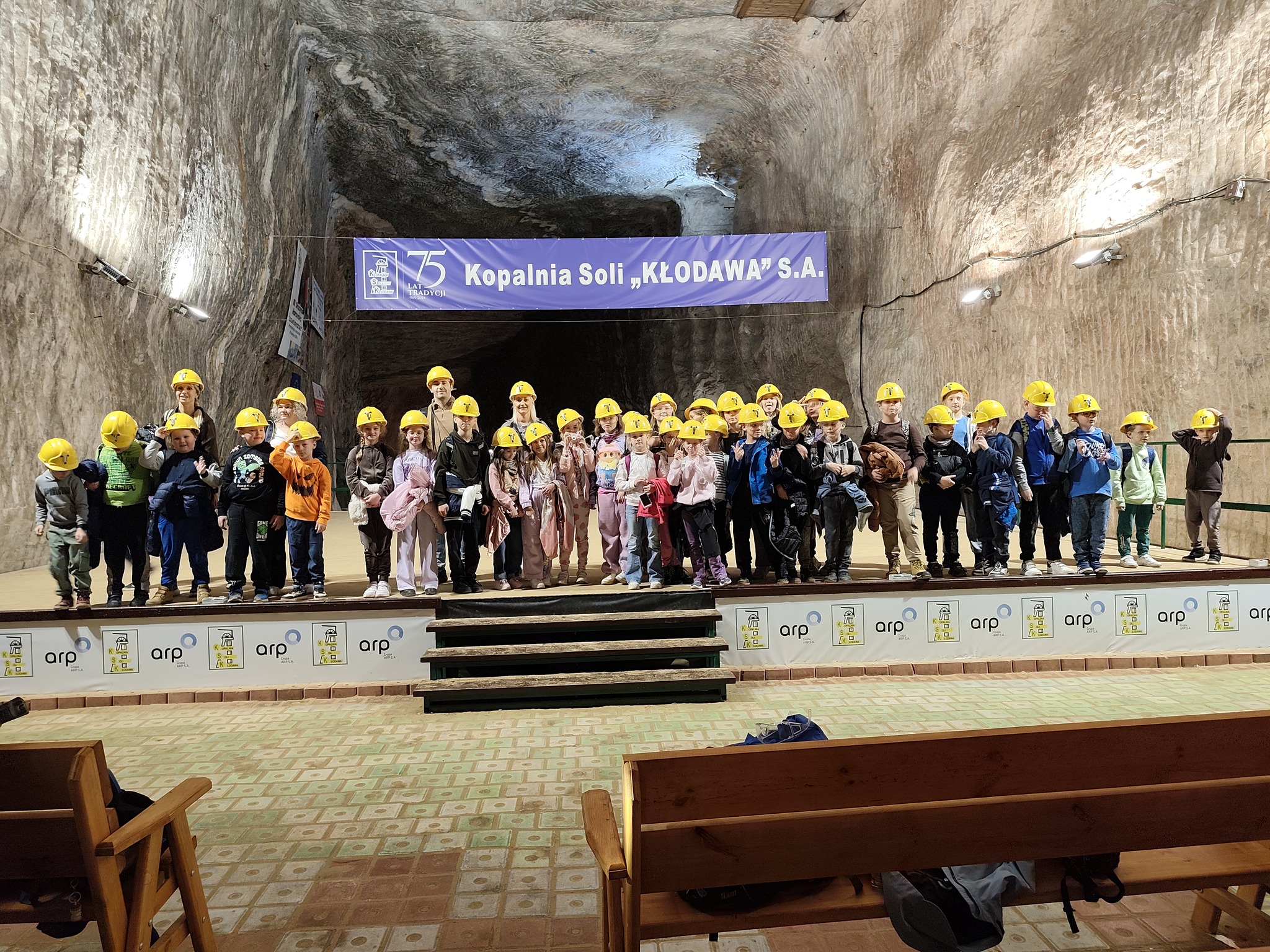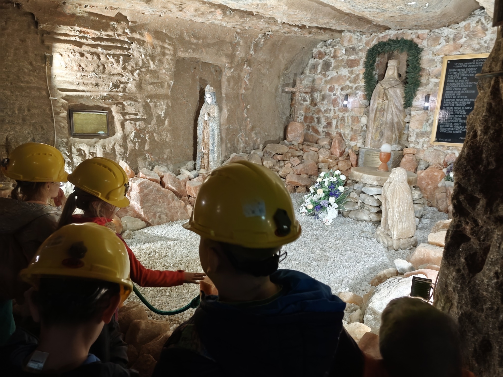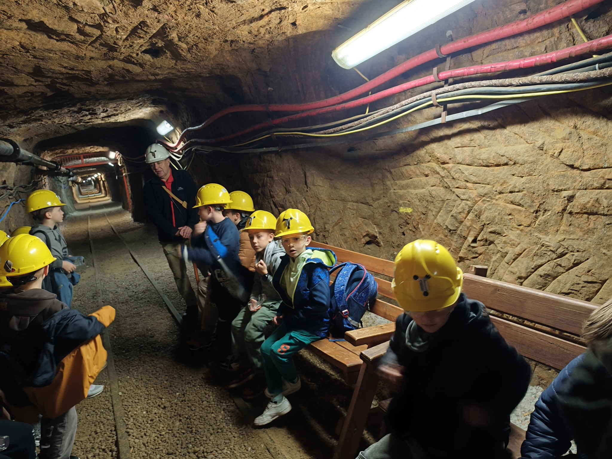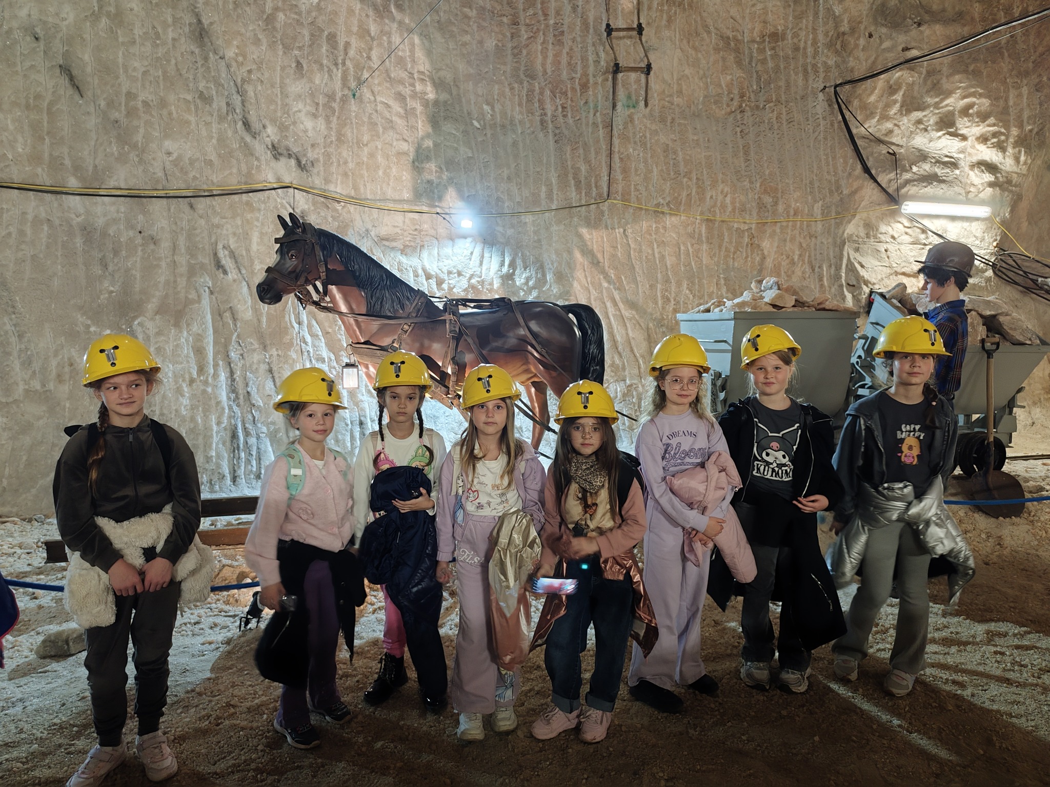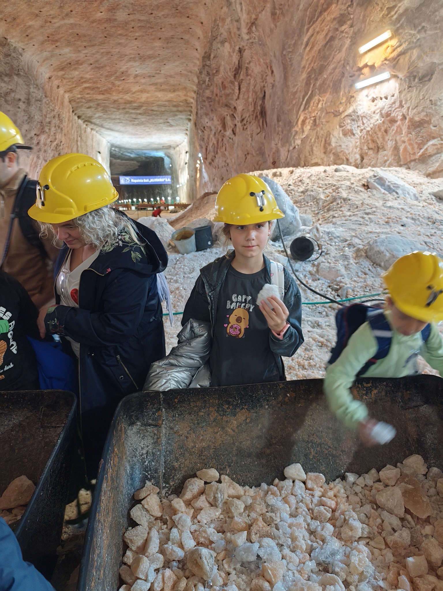 Pierwszym punktem programu była wizyta w Kopalni Soli, gdzie uczniowie zeszli kilkaset metrów pod ziemię, by poznać tajniki wydobycia soli oraz zobaczyć niezwykłe, kolorowe korytarze wykute w soli kamiennej. Przewodnik opowiadał o historii kopalni, pracy górników i ciekawostkach związanych z tym miejscem.