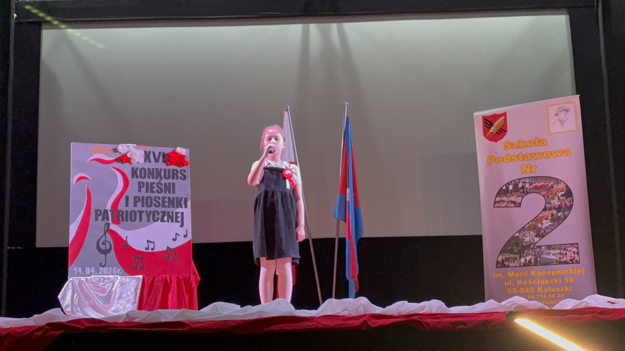 Uczennice klasy 3a – Zuzanna Grzelak oraz Hanna Kozłowska – z dumą reprezentowały naszą szkołę w Konkursie Pieśni i Piosenek Patriotycznych, który odbył się w Miejskim Ośrodku Kultury w Koluszkach 14 kwietnia.